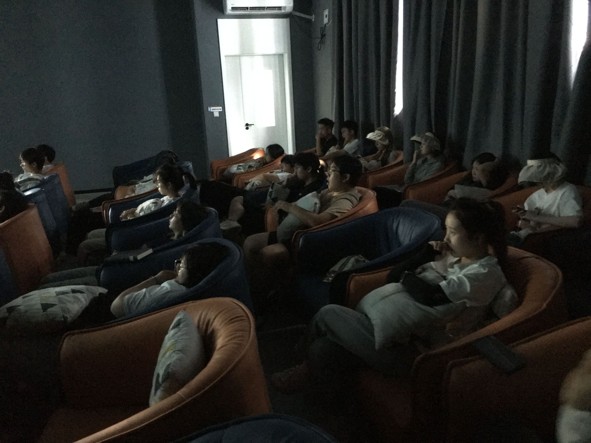 待书院工作人员将放映设备调试完备,伴着《中国机长》独有的开场声,我们的本次观影活动正式拉开序幕。同学们或抬头挺胸、或悠闲肆意地倚靠于休闲沙发一角,享受着这独特的集体观影时光。不觉到飞机驾驶室前挡风玻璃突然破裂、仪表盘损坏、飞机故障失联处,同学们屏紧呼吸,随着电影中身处于危险的人们一起胆颤,或惊呼、或感叹,好似身临其境一般。