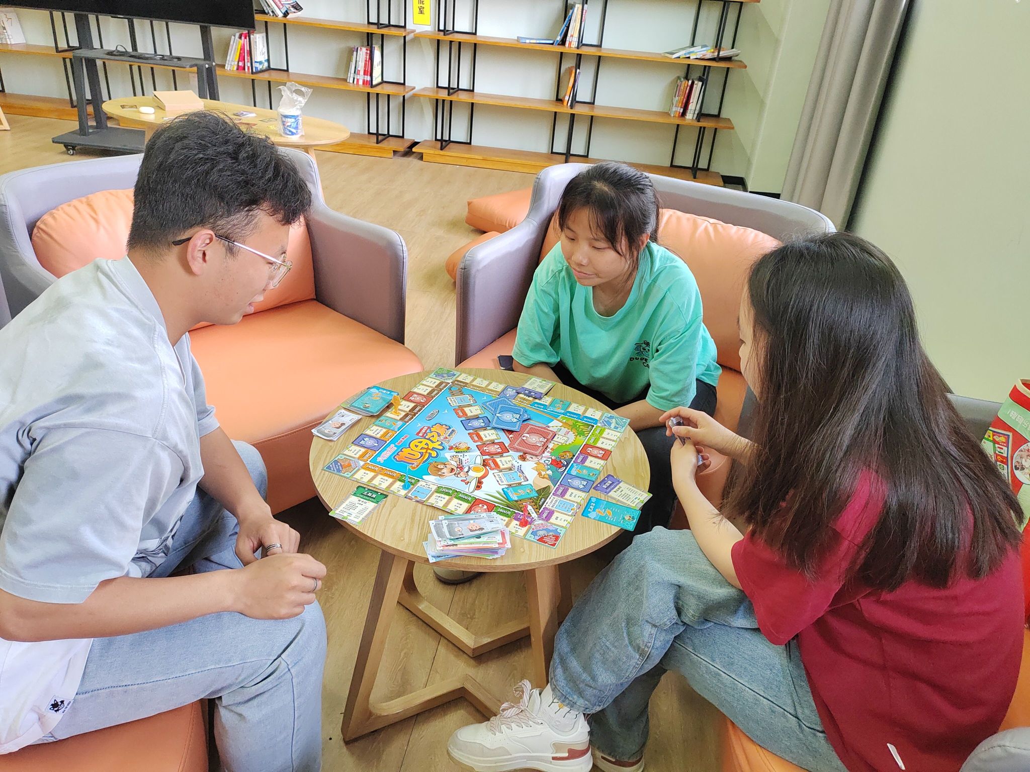 整场活动设置狼人杀、大富翁两款桌游,参与者根据喜好自行组队。在讲解员分享桌游活动规则后。同学们便迅速投入到游戏中。