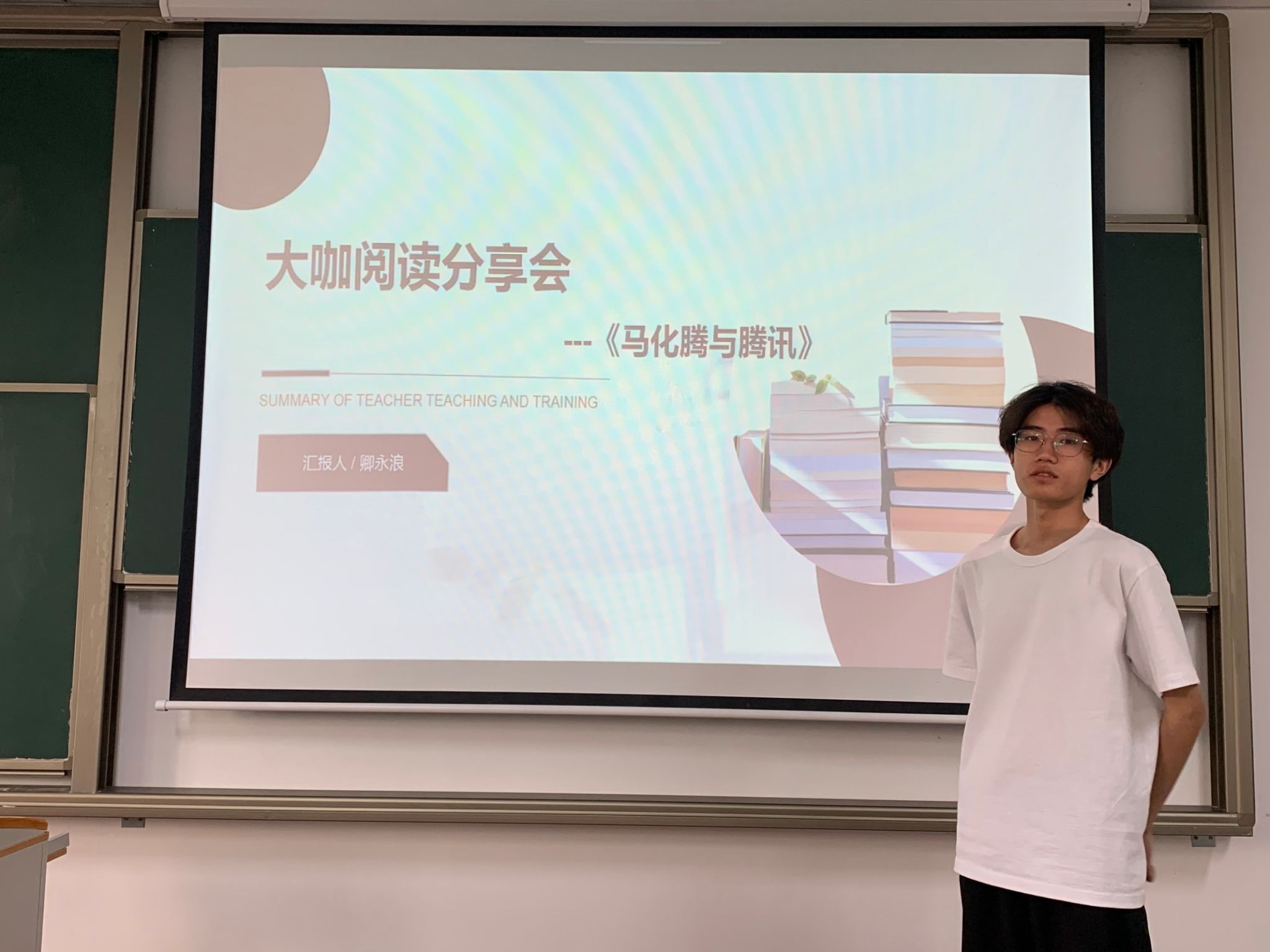 分享结束后,同学也对《马化腾与腾讯》这本书发表了一些自己的见解。最后段瑶老师也分享自己的看法,通过这次分享和交流,同学们的思想得到了碰撞,优秀的经验得到了共享和相互促进。每次的大咖阅读,同学们都能有新的体会,这并不仅仅是学生对大咖书籍的期待,更是一群志同道合的学子对读书的向往之态。
