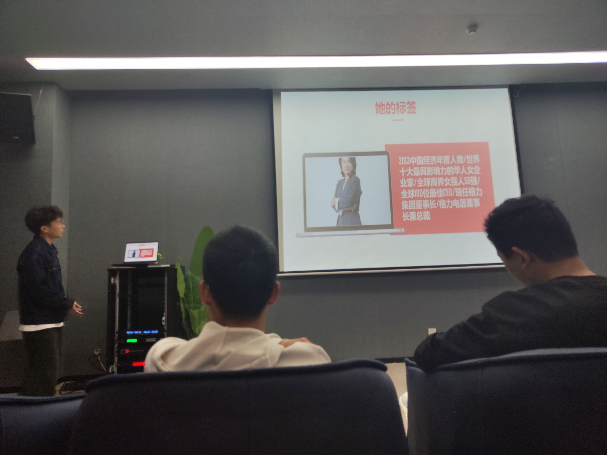 征服困难,就是荣耀;不断地前行,就是完美。分享会开始,由第一小组柳景轩带来的分享是“企业家中的花木兰——董明珠”。在他的分享中,让我们认识到了一个说话铿锵有力,做事雷厉风行的企业女强人——董明珠。对于职业女性,董明珠说:“职场上很多人会说以后要当总经理,那不叫目标,而是一种私人的目的。我在岗位要做得比别人都好,这就是目标。你每一个都做得比别人好,受到别人的尊重,由于尊重,你的职务就会发生变化。不是为了职业目的去实现人生价值,只有这样才能成功”。