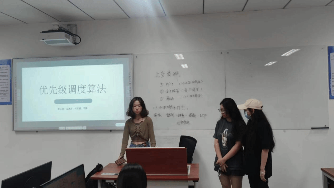 同学们根据事先教学任务安排要求,通过分组选题、讨论交流、设计方案、实施落实,分别完成了操作系统课程的“银行家算法”、“哲学家就餐问题”、“页面置换算法”、“磁盘调度算法”等经典原理问题的设计与实现。通过最后的设计答辩的问题反馈与交流,同学们加深了对课程理论性知识的理解,提升了程序编程的能力,塑造了团队协作的精神、也培养了发现问题解决问题的能力。