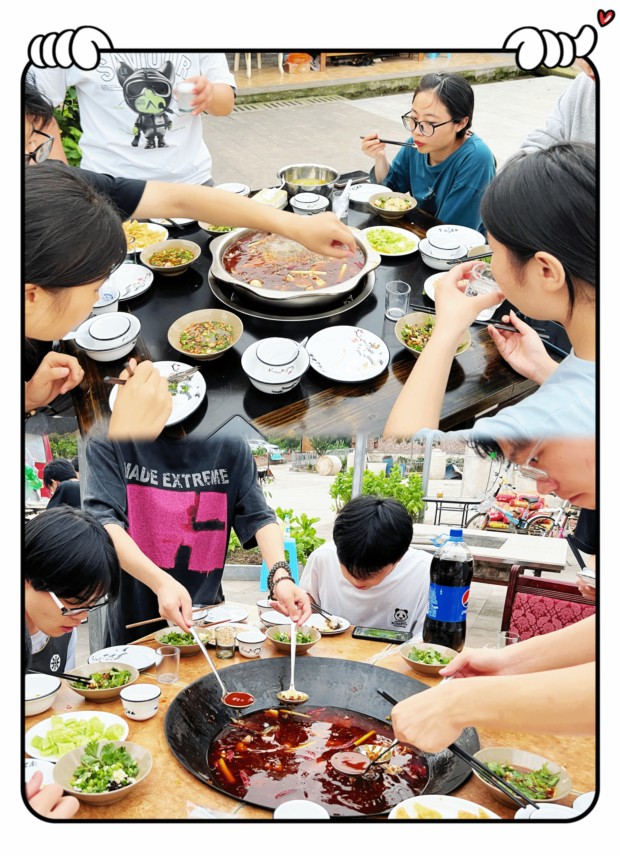 在王老师的推荐中,大家去尝试了小镇美食——火锅鱼。王老师亲自开车载着学生们,从乡间小路驶出后,不久便抵达了农家小院。这里安静宜人,环境幽雅,空气新鲜而清爽。鱼肉鲜美,特制的调料更是鲜香可口,大家吃得津津有味。