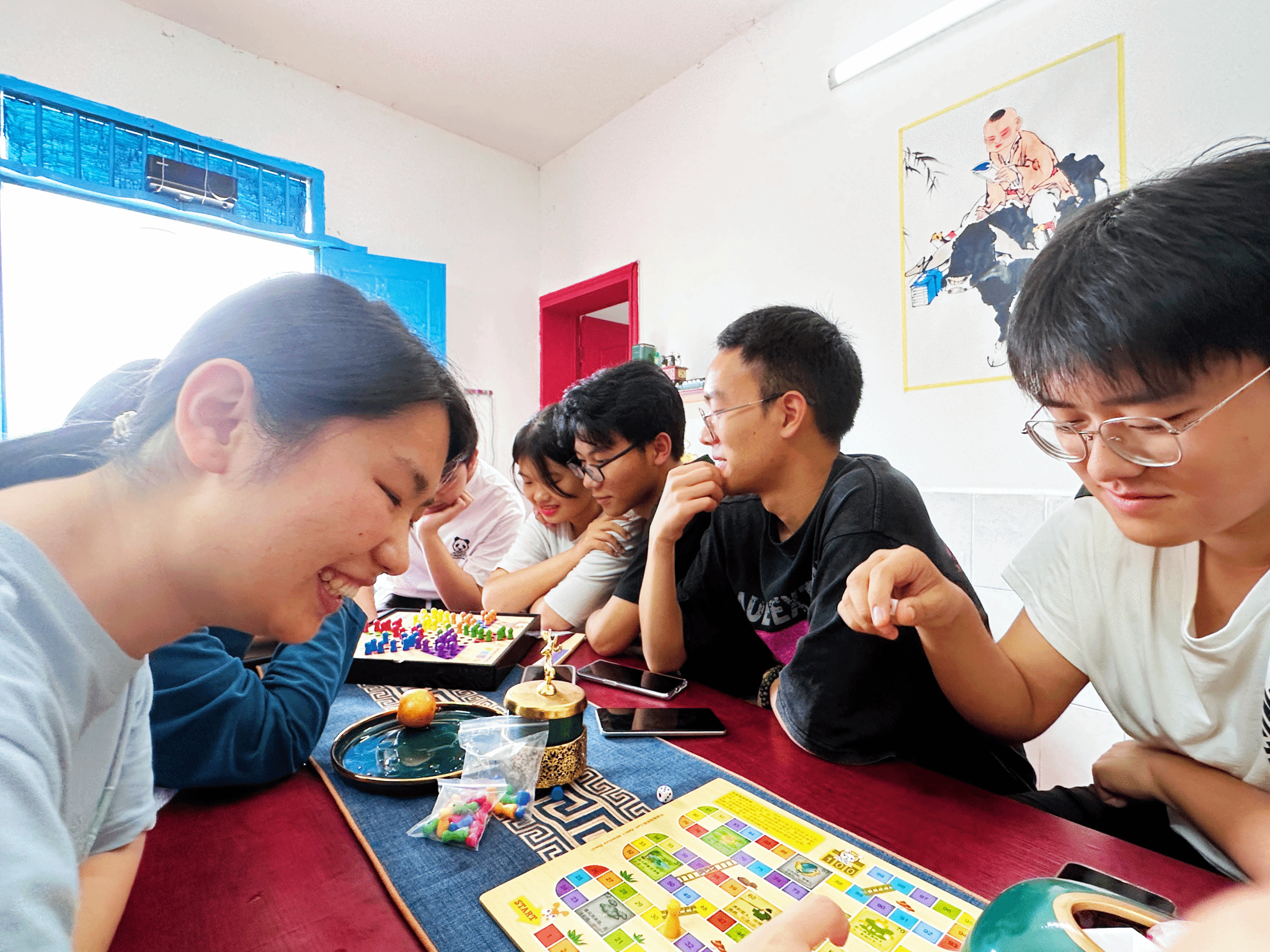 同学们首先由张老师带领着来到了王恒绩老师的家中,王老师家中的内部装饰非常精美,书柜中堆放着大量的文学作品和桌游。大家置身于一个学习、娱乐氛围都非常浓厚的书屋中,充分地释放了内心的创造力和灵感,欢快地度过了几个小时的时光。