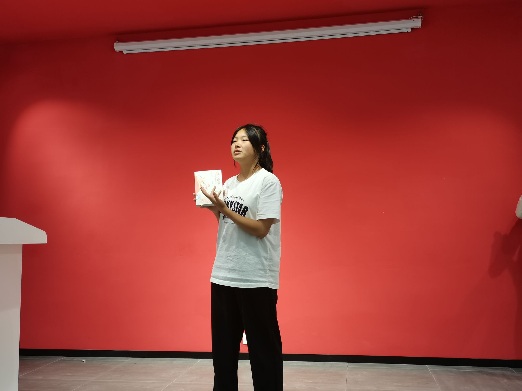 随后,皮梦欣同学与汤郁同学分别就自己所读书籍进行“内咖肽分享”。皮梦欣所读书籍为《不拘一格》,它由里德-哈斯廷斯,艾琳-迈耶共同著作,主要讲述的是如何成立一个好的公司。皮同学分别就从员工和创新两方面出发进行了分享,她提到这本书其实非常符合我们学校的完满教育理念,从培养高情商学生角度出发,让大家面对中小型企业的工作,给她带来一定的思想指导和就业方向方面的启示。汤郁同学所读书籍为《枕上诗书》,她提到这是一本诗词普及性书籍,精选《中国诗词大会》经典诗词37首,从先秦时期到清代每首诗都是一段传奇,每首词都有它的故事,这一首首诗词,能让生活在现代的我们行走在其中,去体味,去感受,去释怀,也从诗词中去寻找力量,去获得新生。同学们都聚精会神听着两位同学的分享,跟着她们叙述的节奏进行思考。