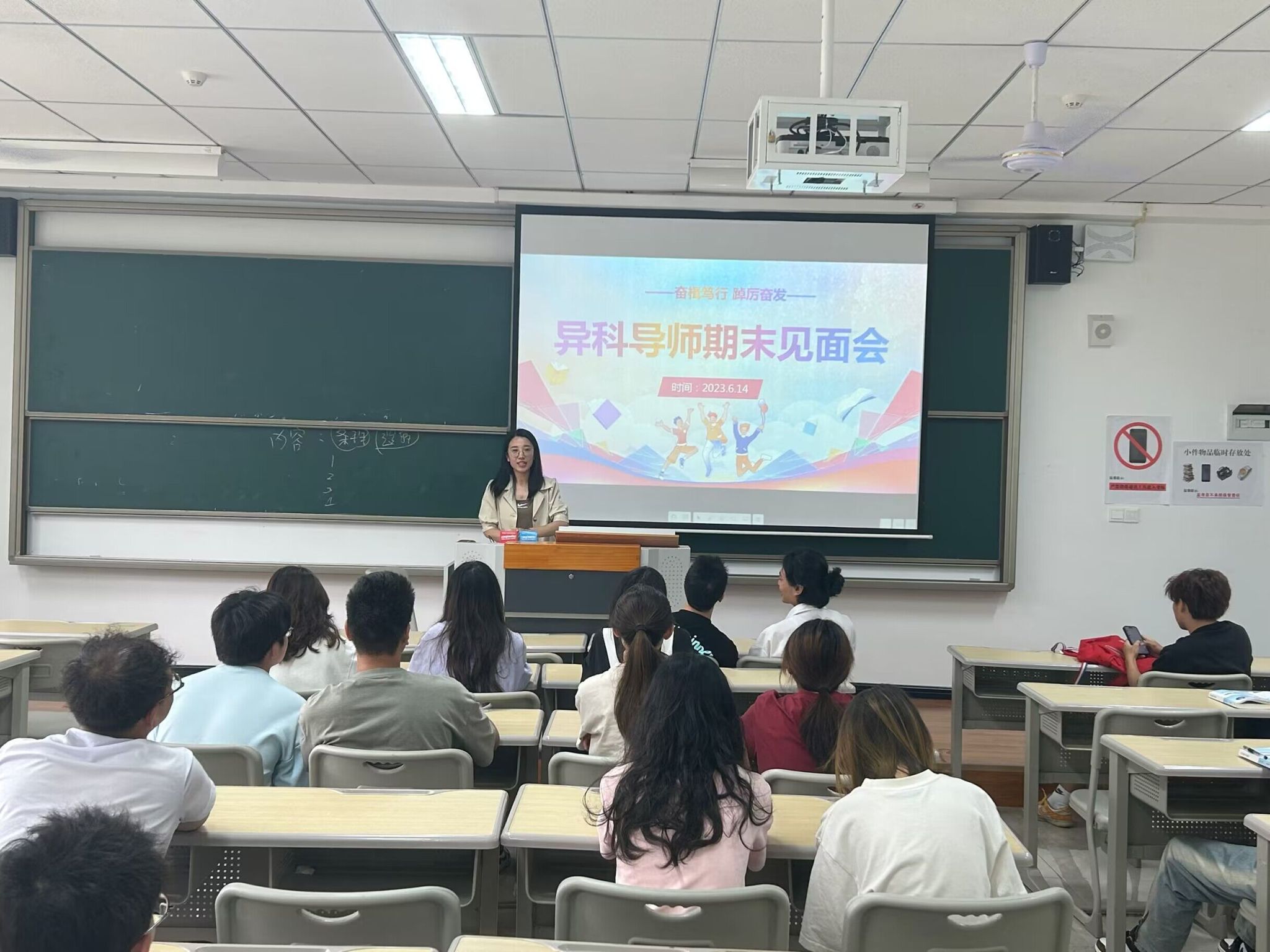 岁月不居,时节如流,转眼之间,一个学期的学习生活已接近尾声。为进一步加深异科导师与同学们之间的沟通交流,了解同学们的近期学习情况并做出一定指导,2023年6月14日,郝晓丽老师组织同学们在仁者楼311教室开展了本学期期末座谈会。本次座谈会内容分为四部分:期末考试动员、专业方向梳理、大学职业规划以及走进宿舍,倾听心声。