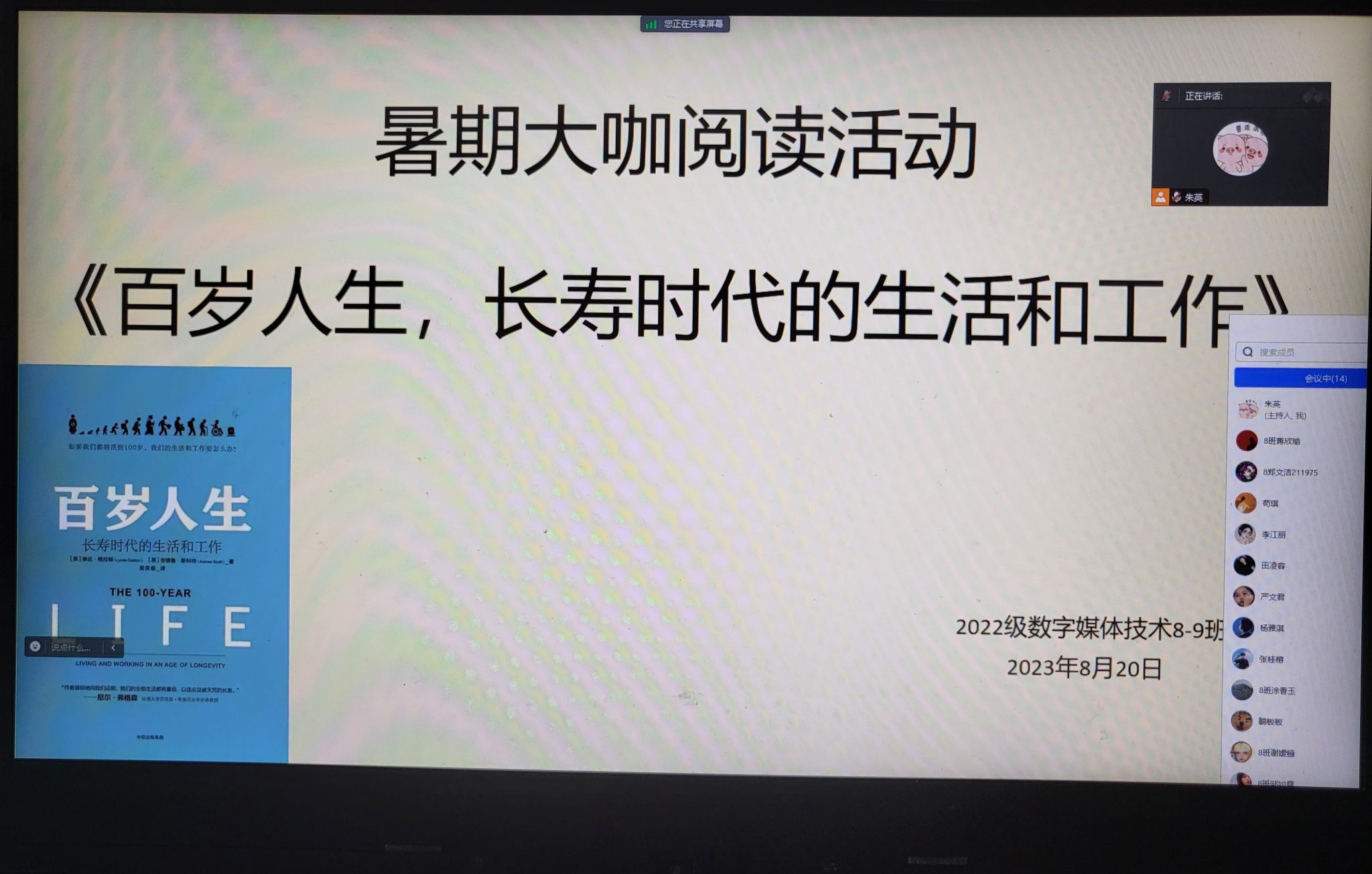 2023年8月20日,异科导师朱英老师与来自大数据与计算机科学学院2022级数字媒体技术8班的14位学生在腾讯会议上展开了暑期大咖阅读活动。