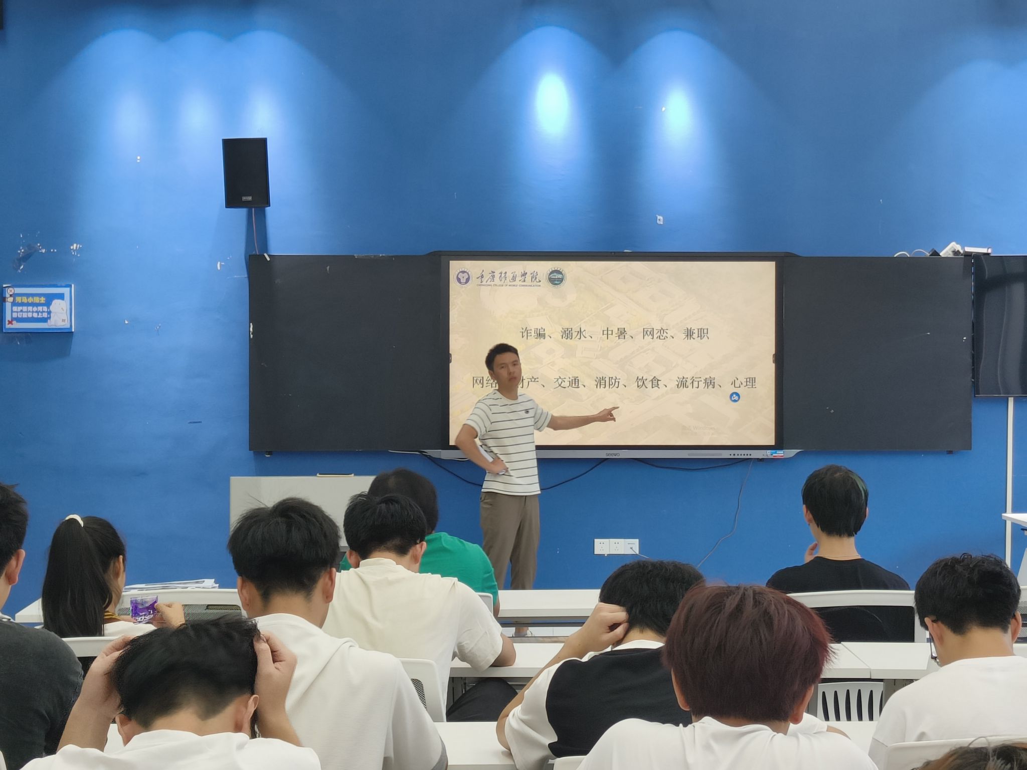 同时,老师们结合新学期同学们思想行动状态,开展了思想道德素质教育,国家安全、网络安全、交通安全、财产安全、饮食安全等主题安全教育,以及进行了心理健康、身体素质、诚信考试、传染病疾病预防等方面的教育。此外,老师们还对新学期请销假、晚点名等校园管理、以及学生学业规划等诸多方面进行了着重讲解,希望同学们认真规划宝贵的大学生活,树立清晰的目标,制定良好的学习计划为以后的发展有充分认识,进一步明确自己未来的学习计划和目标。
