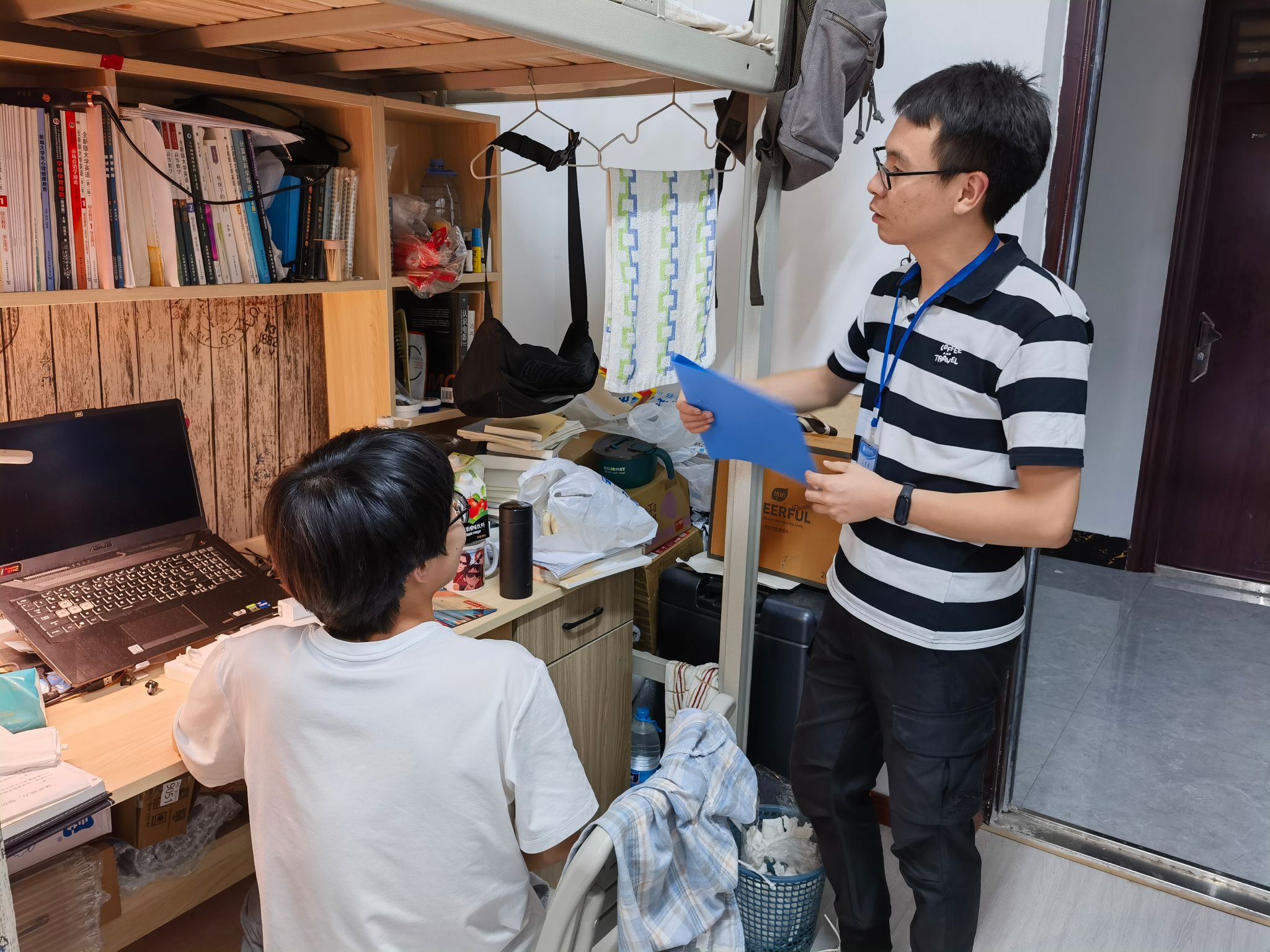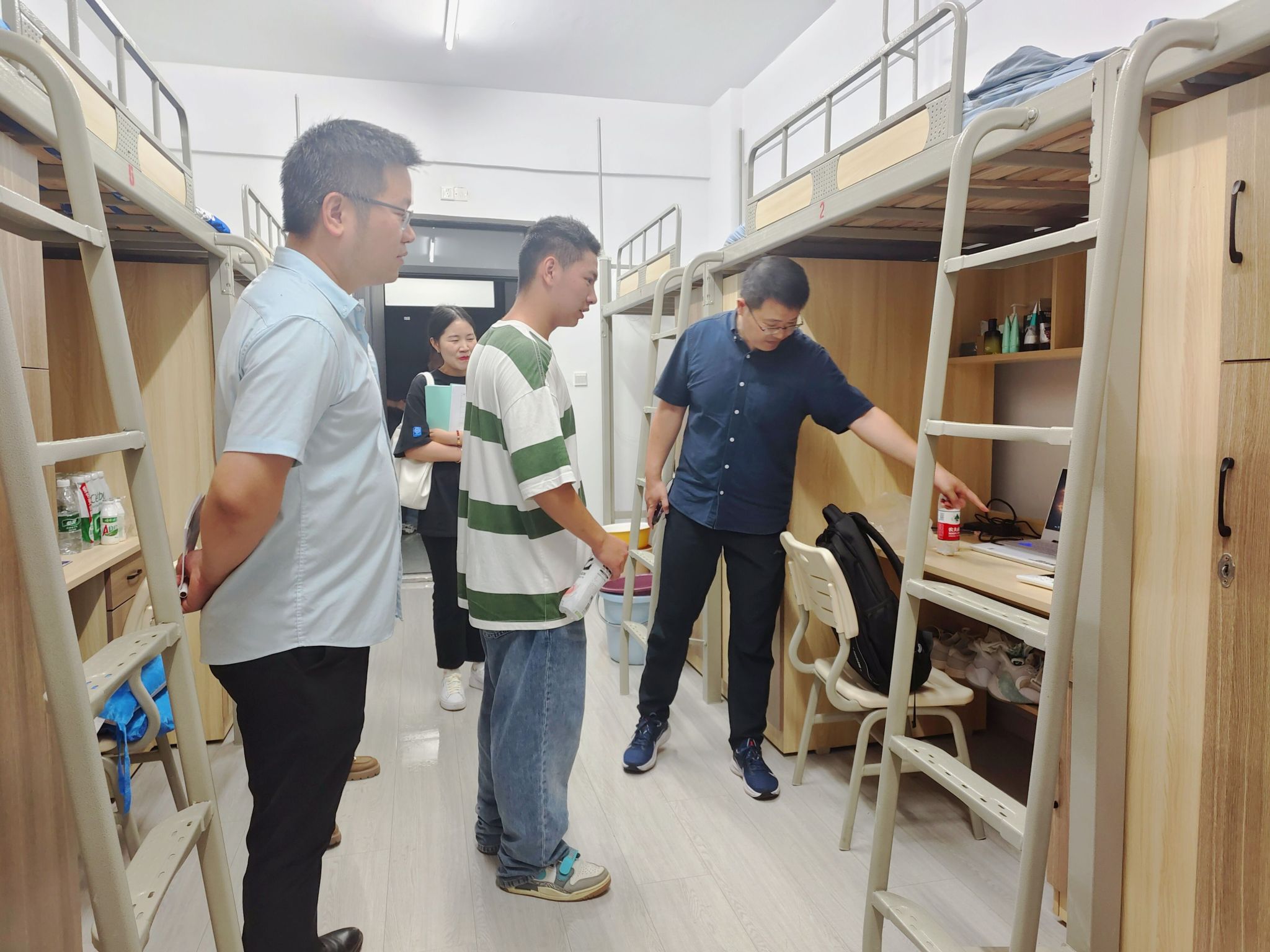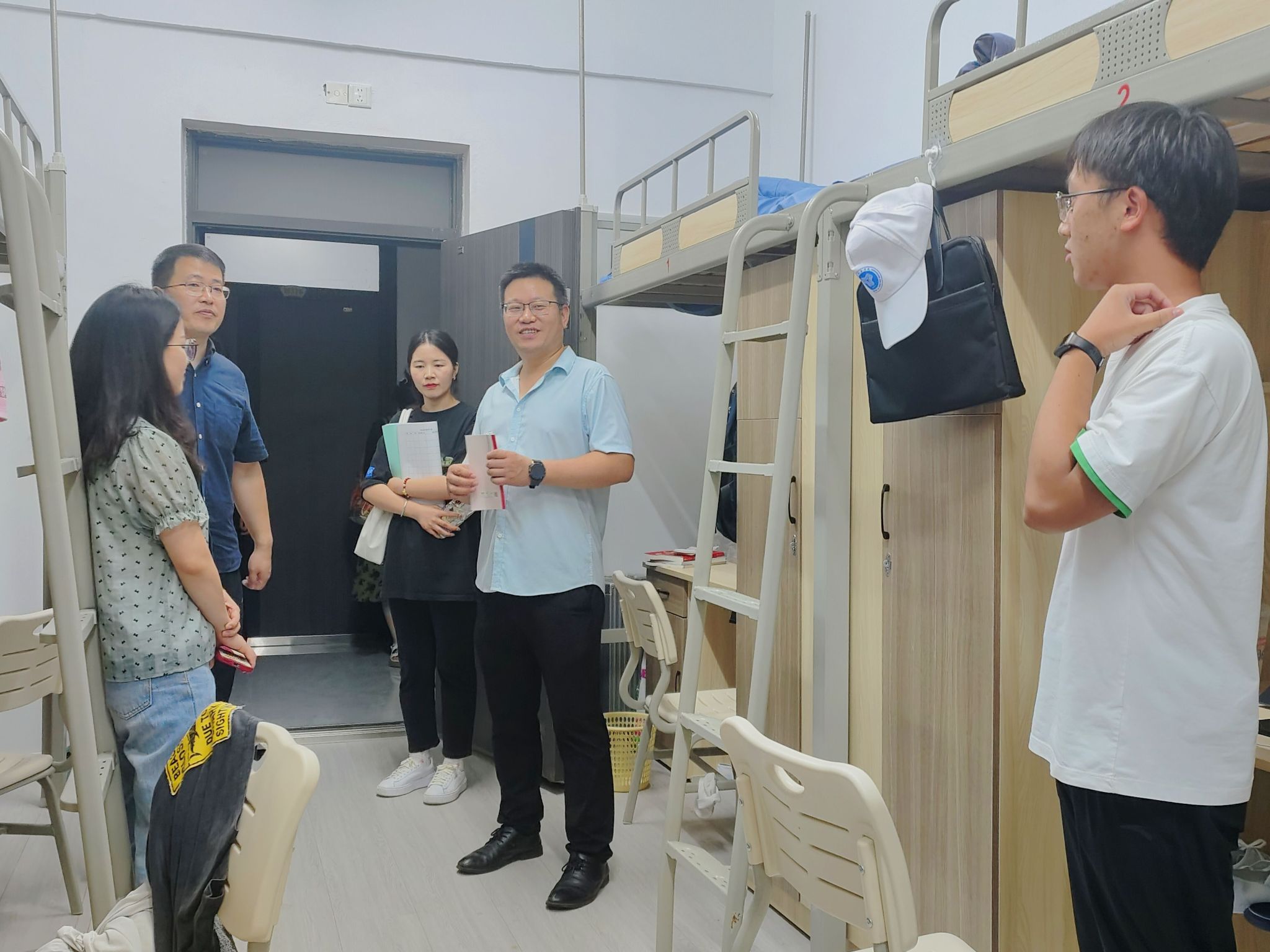 炎夏已过,初秋将至。为精准掌握学生日常生活状态,排查学生宿舍安全隐患,全面了解学生入学、返校后适应情况,帮助全体新生更好、更快地融入新环境中,9月13日晚,大数据学院院长闫会峰副教授、副院长吕云山副教授、副院长阙小梅老师以及全体辅导员老师和班导师代表走进学生宿舍走访,与同学们“聊家常、谈近况、畅学业”,送上开学后来自学院的第一份温暖和关怀。