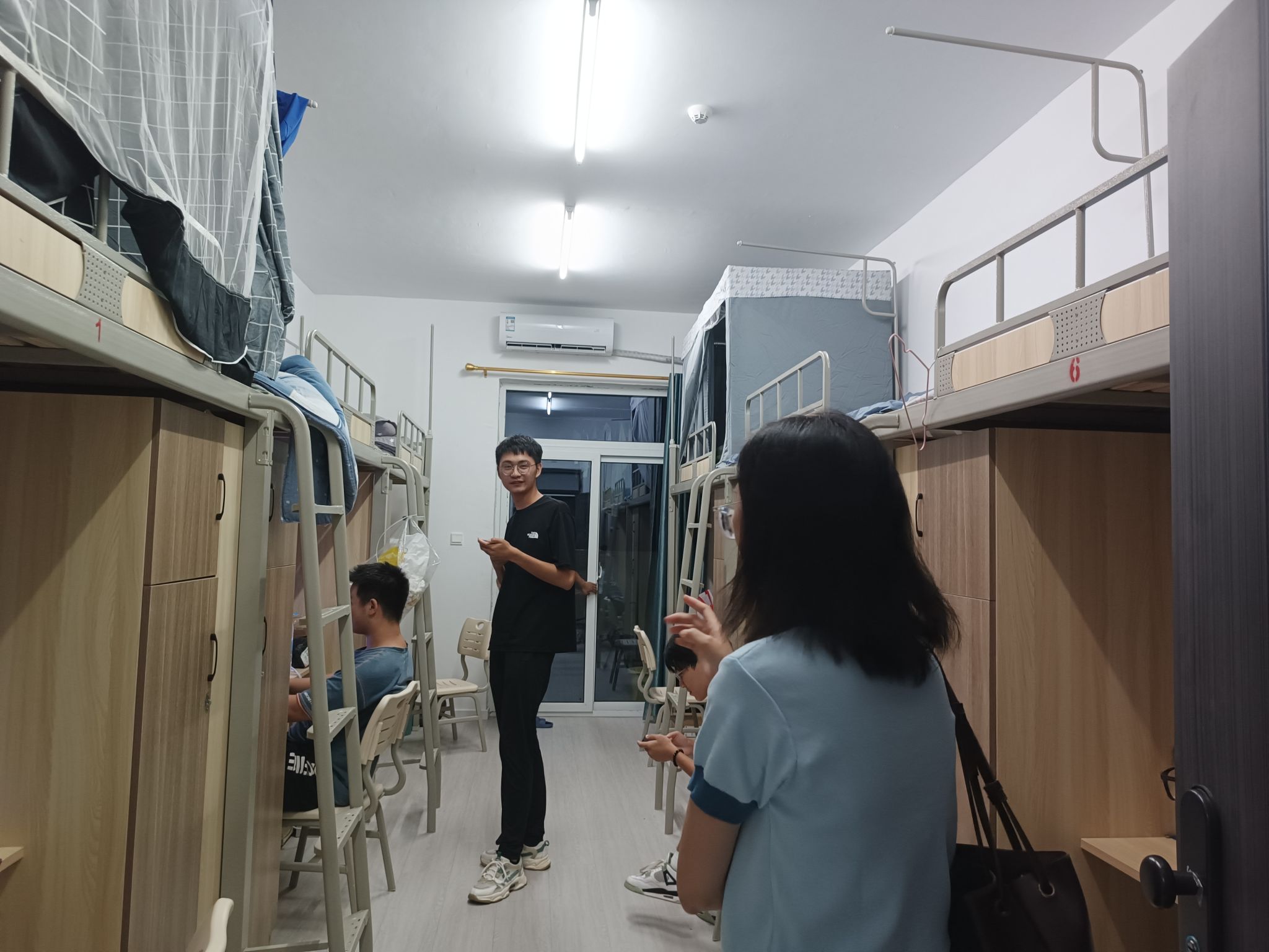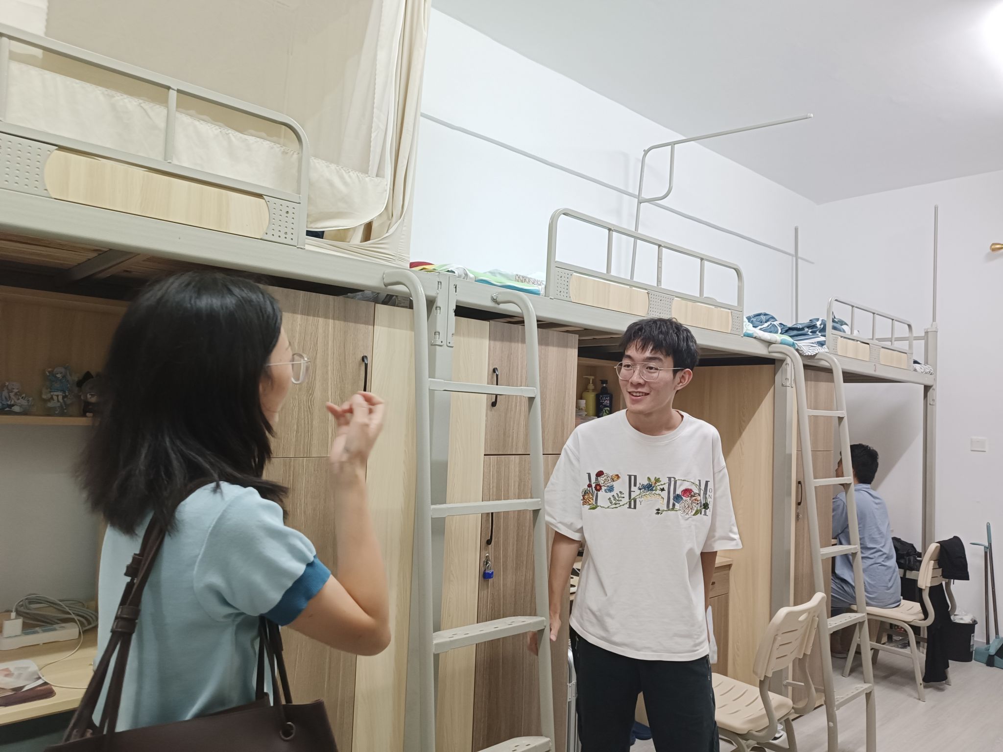 “饮食吃不吃得惯?”集中查寝首先从古剑书院开始,在走访宿舍的过程中,闫会峰院长、吕云山副院长、阙小梅副院长和辅导员老师们走进宿舍,观察学生们的生活居住环境和基础设施,询问和了解同学们入学后的适应情况。老师们告诉大家,宿舍是同学们多年学习时光中待的最长的地方,舍友也是同学们学习生活中最亲密的伙伴,良好的宿舍环境和融洽的宿舍关系至关重要。希望同学们在以后的朝夕相处中,能够团结友爱、共同进步。