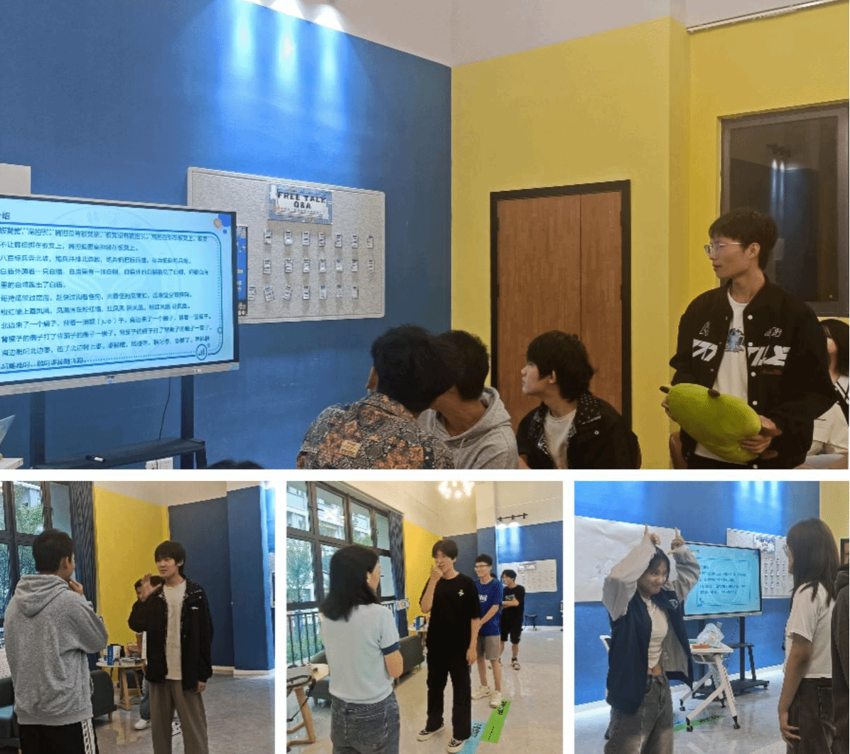 见面会中期,为让干事之间相互了解,开展了趣味自我介绍。通过击鼓传花和绕口令的方式,抽取幸运儿进行自我介绍并念一段绕口令。随后,又进行了“你划我猜”的游戏,根据部门分为三组,五人为一组,一人抽取卡纸,根据卡纸上的动物名,通过肢体语言传递给下一位直至猜出,每组用时最短的获胜。在游戏过程中,崔雅斌老师与同学们都积极参与,乐在其中,整个咖啡厅充满了欢声笑语。