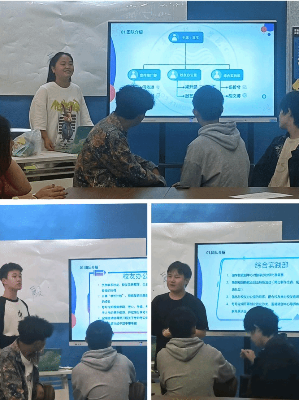 出席此次见面会的嘉宾有大数据学院辅导员、就业创业助理团团指导老师崔雅斌老师,就业创业助理团主席常玉同学以及各部门干部干事。见面会初始,由崔雅斌老师简单做自我介绍并发表讲话,紧接着就业创业助理团主席以及各部门部长进行了自我介绍,并由各部长向新进干事解读部门职能,帮助新进干事们进一步了解组织结构和职责分工。