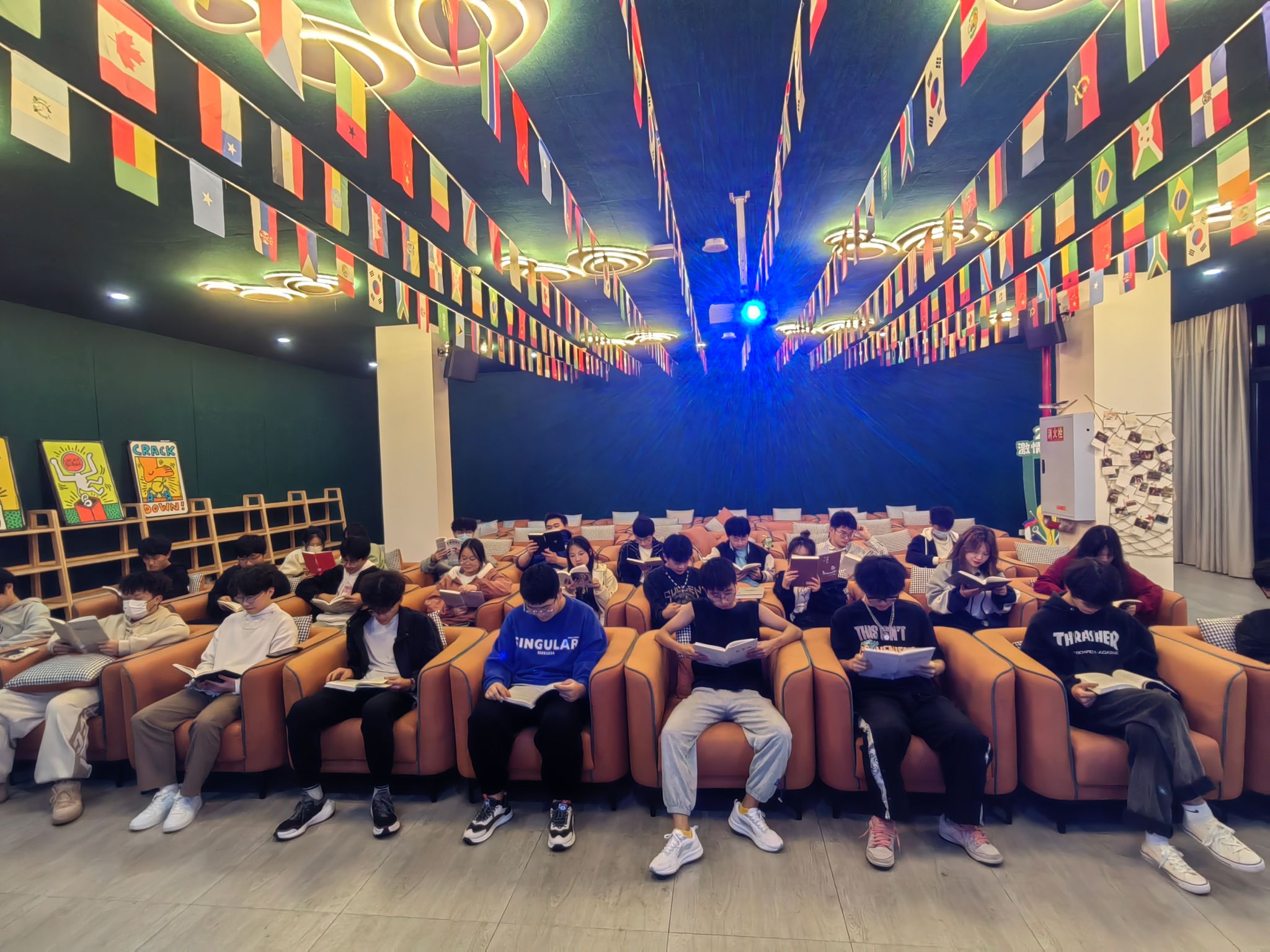 读书是不分时间、地点与场合的。年四季中,春夏秋冬皆可读书,躺床上、吃饭时、旅途中亦皆可读书。如今夏天烈日炎炎已过,秋天秋季绵绵细雨与微风带来的温度锵锵适宜同学们读书。活动期间,同学们保持安静,目光全程聚集在书本上,时不时会有翻动书页的轻响。同学们的读书也带着轻松愉悦的心情。
