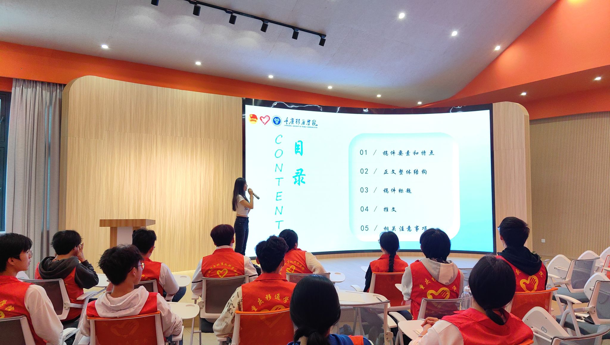新闻稿是学校发送于传媒的通信渠道,用于公布有价值的信息,是志愿活动宣传的重要渠道,为了增强大数据学院青年志愿者协会干事们对新闻稿和微信推文的认识和理解,大数据学院青协宣传推广部于10月8日下午两点在古剑书院含光报告厅开展第一期培训会。