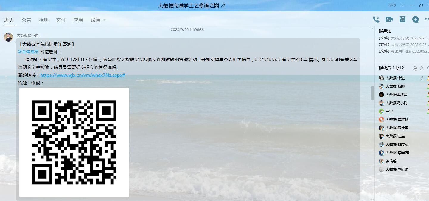 为进一步增强大数据学院学生的法治观念,提高防诈骗的自我保护意识和能力,强化打击治理诈骗防范工作,做到全面强化预警防范,全力构筑“全民反诈”防线,近日,大数据学院采取线上和线下相结合的方式,组织大数据学院全体学生参与反诈知识的学习或宣讲,扎实为同学们系好“安全扣”。