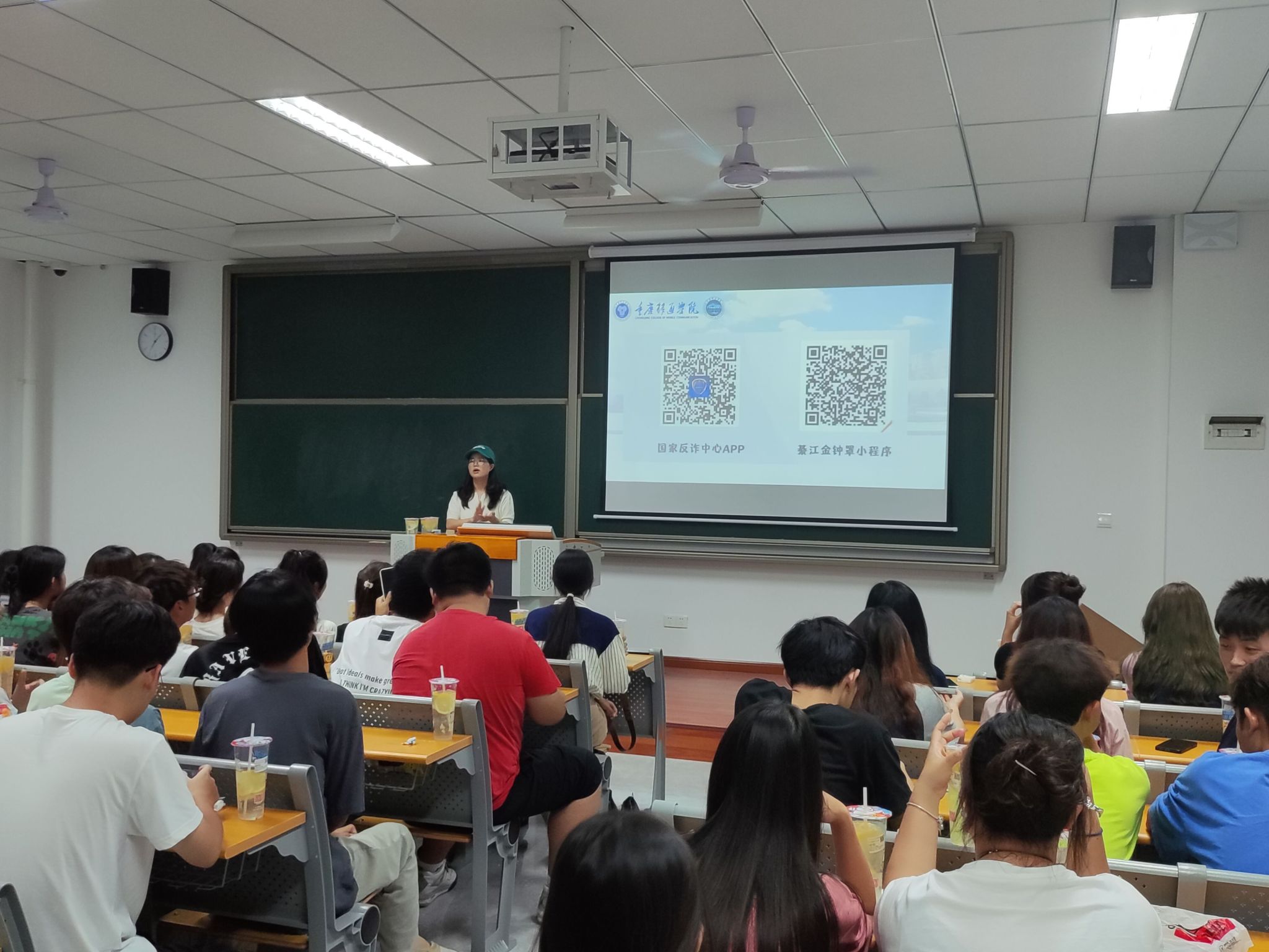在辅导员老师们开展的新生见面会和年级会上,也融入了大学生预防电信诈骗宣传教育的相关内容。纷纷提醒学生们社会上的诈骗事件层出不穷,有很多专门针对在校大学生的诈骗行为,不断有大学生上当受骗,必须提高警惕,保障自身人身财产安全。同时,辅导员也经常会为同学们宣传“国家反诈中心APP”“綦江金钟罩小程序”的功能和使用方法,动员同学们积极下载、安装并使用,提高学生的防诈、识骗能力,有效减少电信网络诈骗犯罪在大学生群体中的发生。