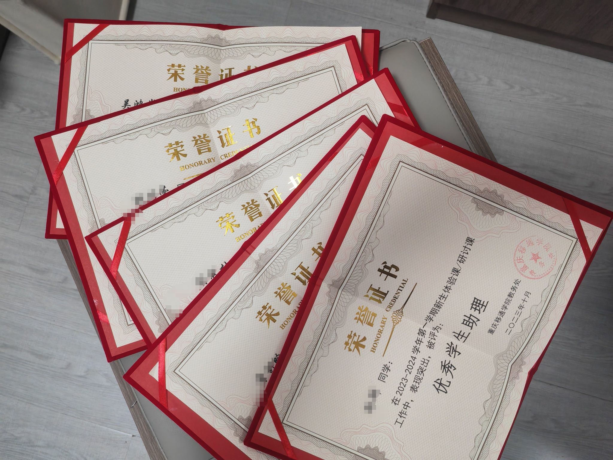 五位同学早早来到教室,引导选课的2023级新生入座,在老师的授课过程中拍摄照片,留存上课素材。天气炎热,五位同学在高温中坚守岗位,一丝不苟的履行自己的职责。2023年10月,重庆移通学院教务处为五位同学颁发了优秀学生助理的荣誉证书。