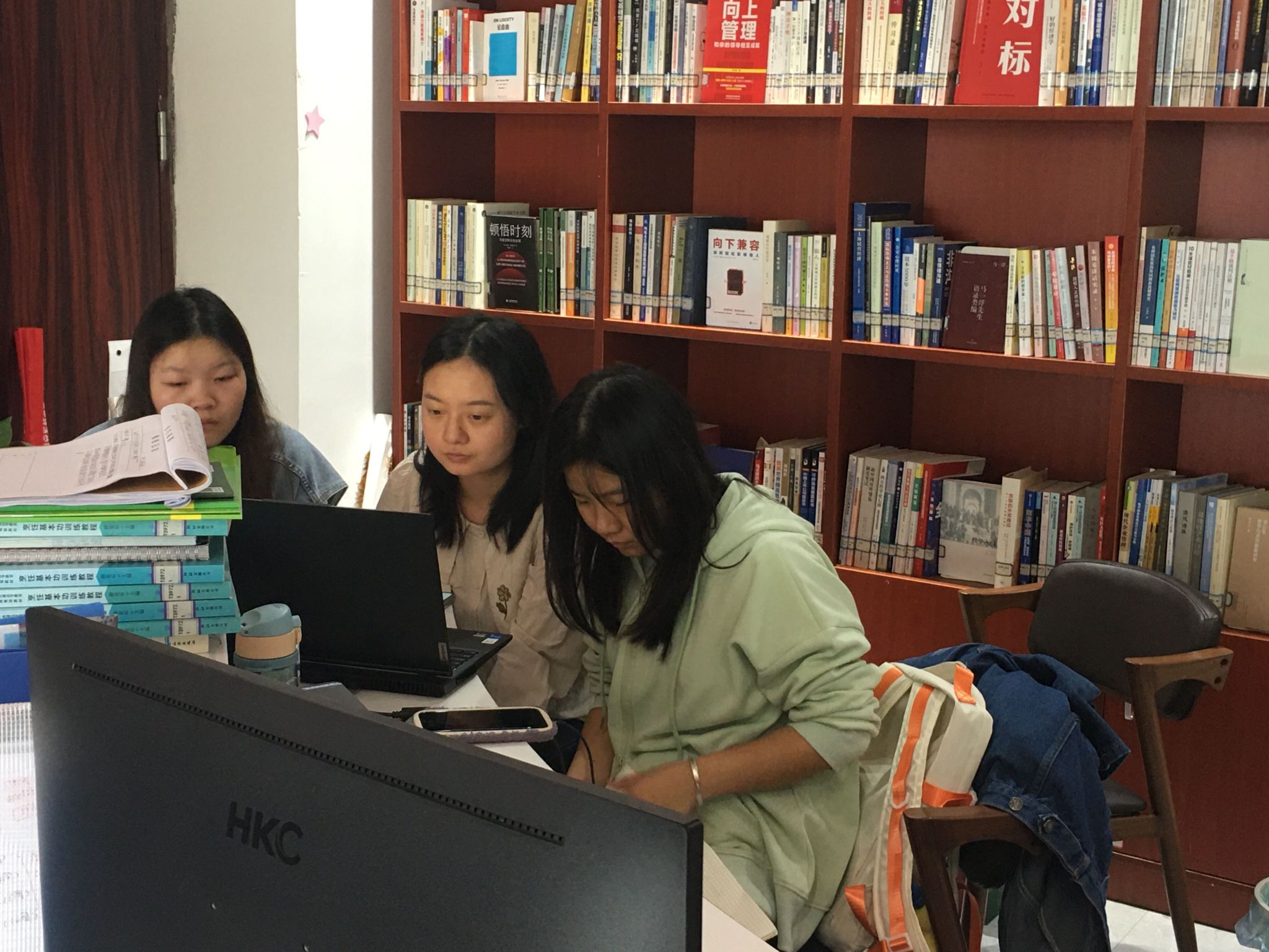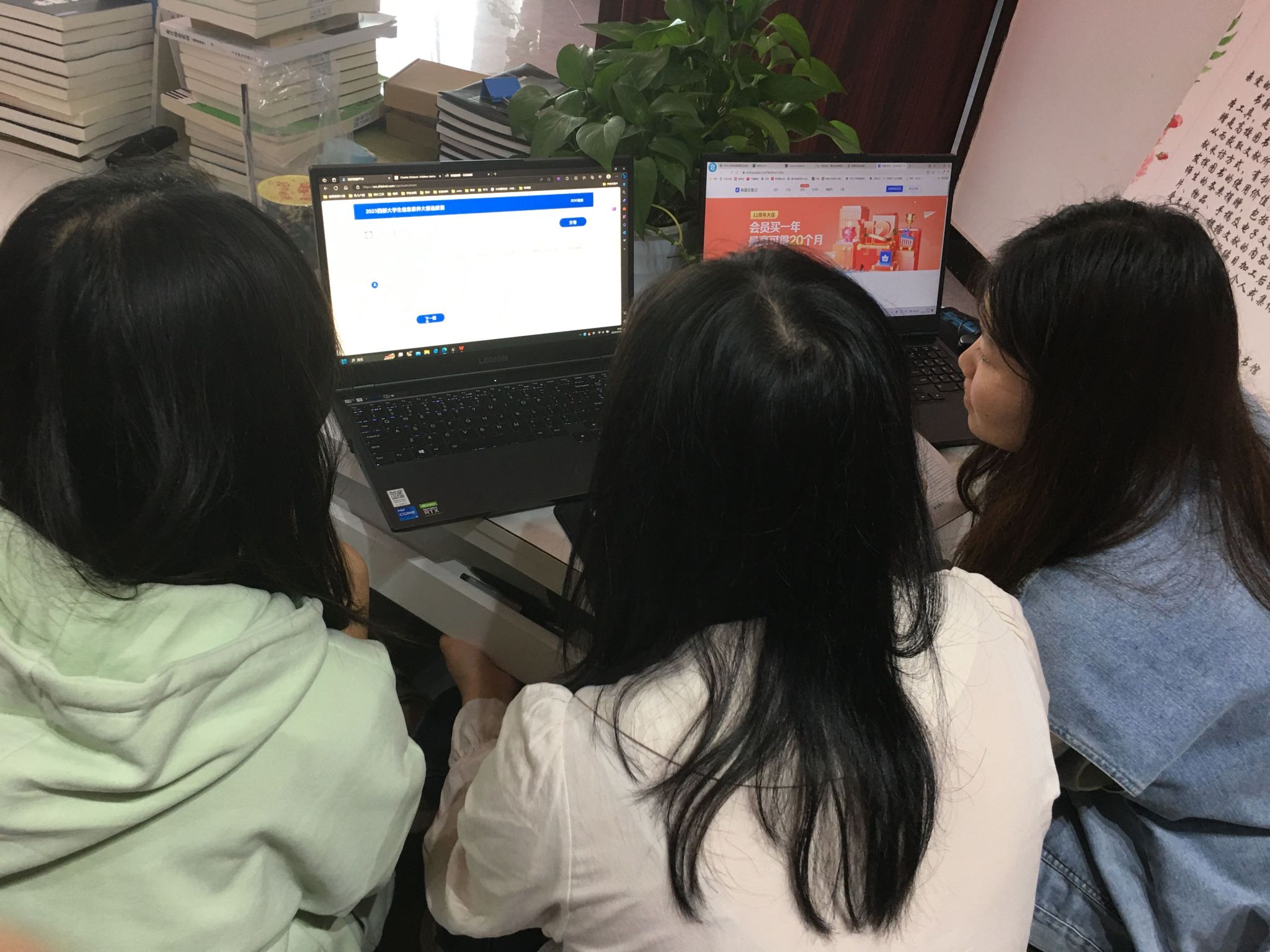 三位参赛的同学当日一早便带着电脑在图书馆与王老师会合。答题开始前,王老师先与大家讲了一些大赛今年的新变化与答题注意事项和小技巧。待一切准备就绪,开始进入答题。答题过程中,同学们专心致志,信心满满。