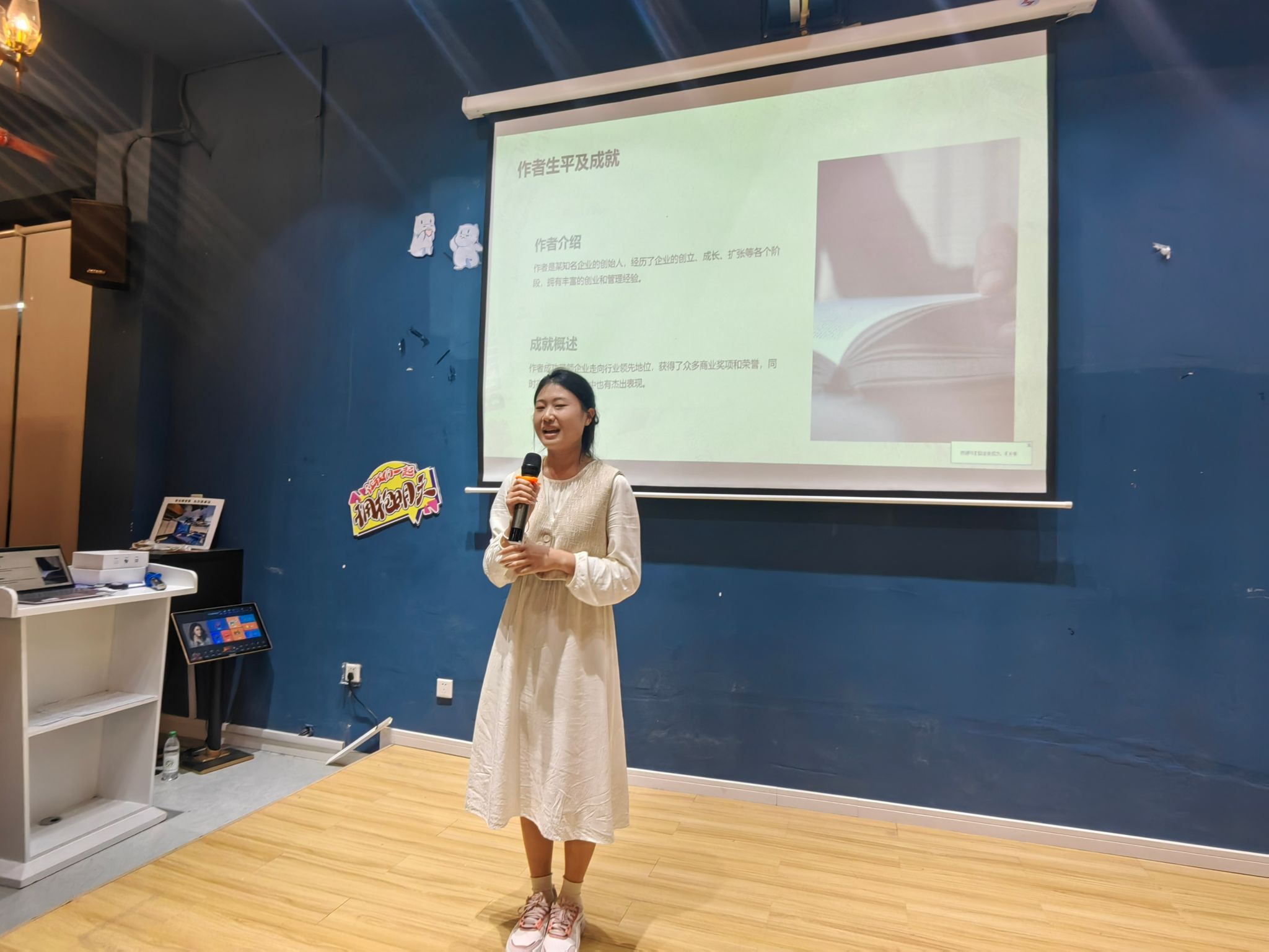 本次大咖阅读的两位领读人张鑫和袁兰馨同学分别就全季酒店创始人季琦的书《创始人手记》展开了分享。张鑫同学首先抛出一个问题,“读这些书是为了未来创业做准备吗?显然好像不是,印象中内心从来没有萌生过这个想法。至于以后会不会,大概率不会,谁知道呢。”随后重点介绍了季琦创业一路走过来的心路历程以及从中获得的启迪。她说道,“从为了名声、财富到理想,可能也是很多人一生的写照,只不过大多数人没有这么丰富的经历,没法做到像他这样成功,然后做自己想做的事情。这本书以其独特的视角和深邃的思考,给予了我极大的启迪和思考。读完这本书,我深深地被季琦的智慧和见解所打动,同时也对于创业和人生有了更加深刻的认识,尤其是他在“天、地、人”的哲学思考能够让我们从中汲取智慧和力量。