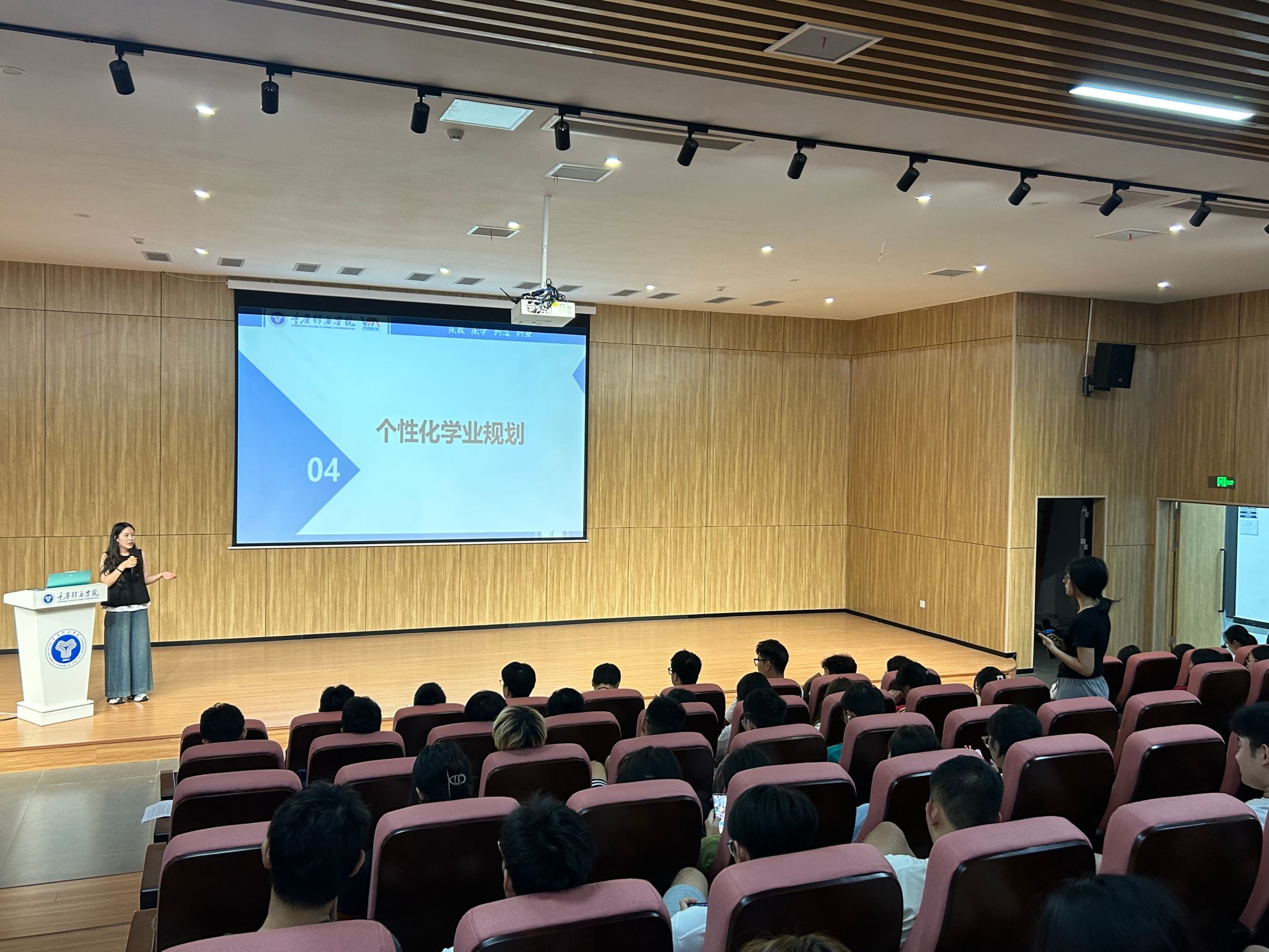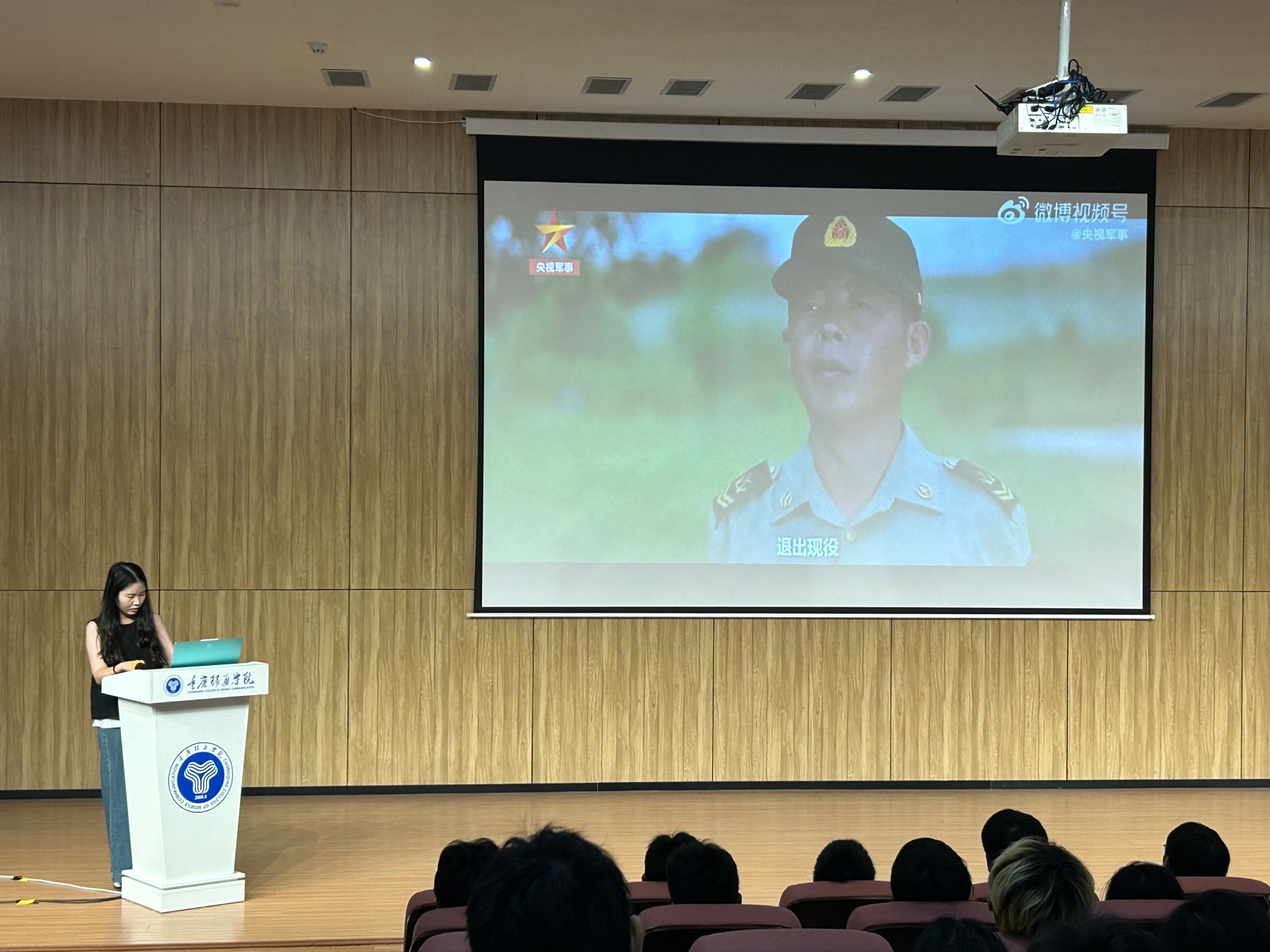 在宣讲前,辅导员穆仕容老师向在场同学们介绍了学校应征入伍的政策、流程和手续,还播放了大学生应征入伍宣传片、退役军人宣传片,激发了同学们的意志和激情。来自2023级数据科学与大数据技术专业的刘珂瑄同学,于2018年参加了应征入伍,今年9月光荣退出现役,本学期正式回到学校继续完成学业,刚办完退役复学手续的她,在接到“毛竹”大学生应征入伍宣讲邀请的时候,第一时间答应了下来,并精心准备了应征入伍的宣讲内容。