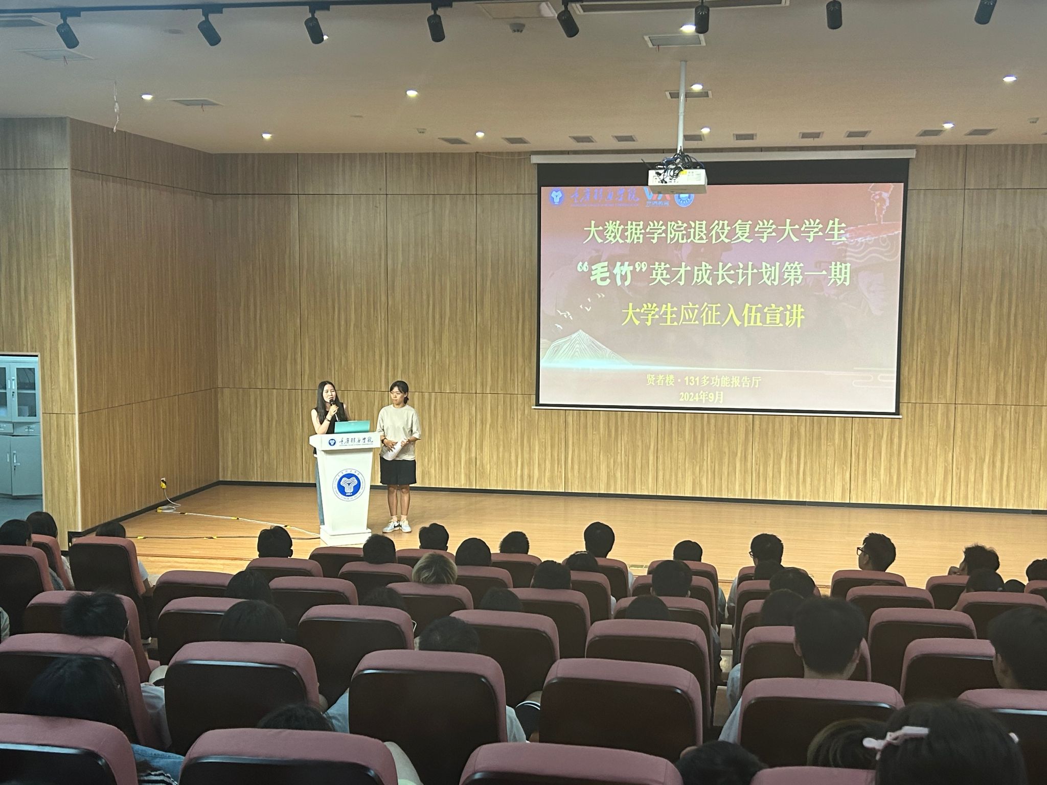为贯彻落实大学生征兵工作要求,激发高校学生参军入伍热情,引导学生响应祖国号召,投身军营建功立业,2024年6月,大数据学院启动了退役大学生“毛竹”成长计划,旨在通过激励退役大学生退伍不褪色,服务同学,收获成长。9月21日,在贤者楼131多功能报告厅,大数据学院“毛竹”成长计划第一期活动顺利举行。