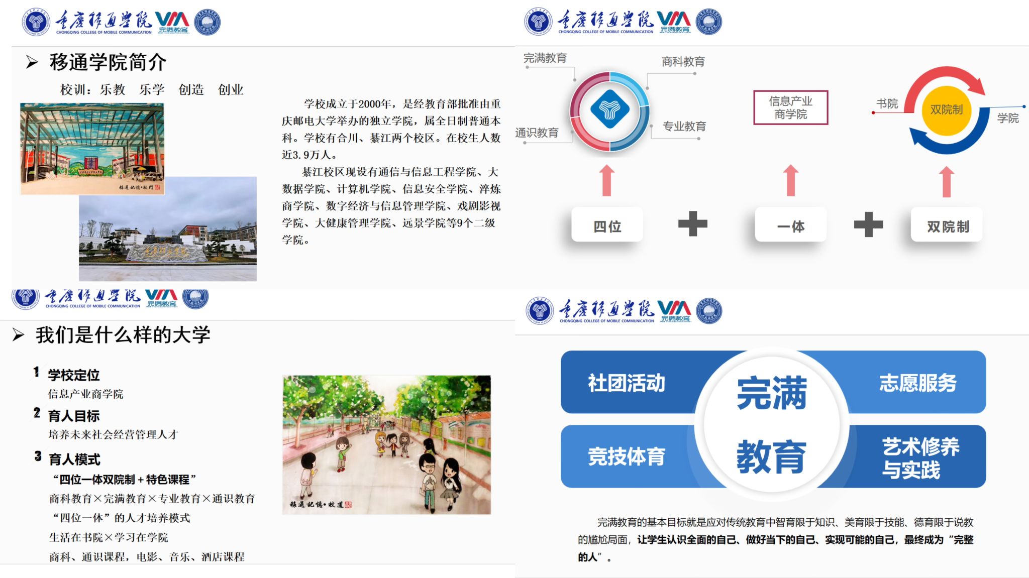 见面会上,辅导员老师们通过精心准备的PPT和视频资料,向新生们全面展示了重庆移通学院、大数据学院的发展历程,以及在“四位一体双院制+特色课程”的人才培养模式下,学校深入推进专业教育建设,满足以学生为中心的发展导向。从校园环境到学校设施,从完满活动到书院风采,让同学们对未来在重庆移通学院的学习生活充满了期待。
