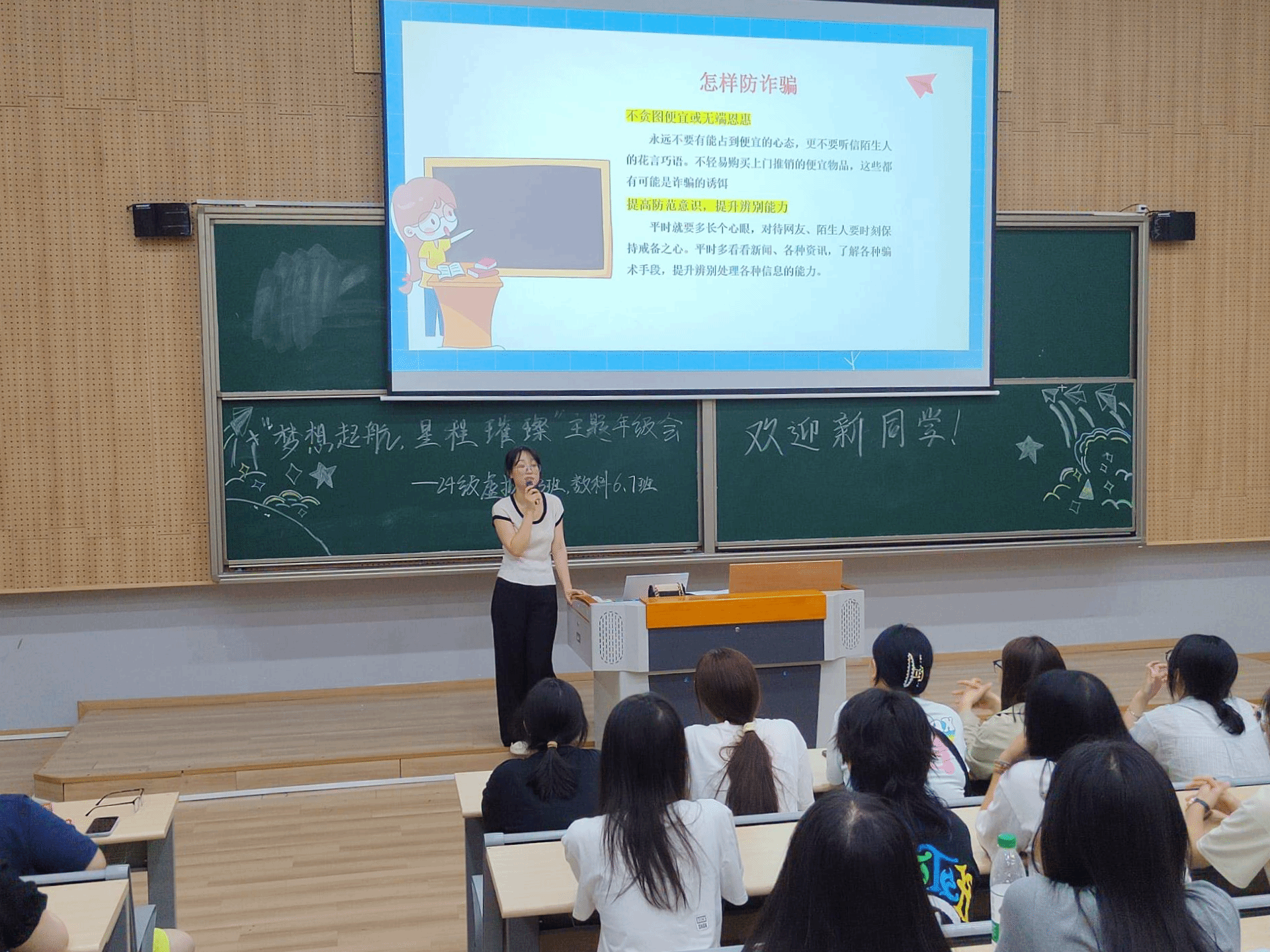 针对当前电信网络诈骗频发的现状,老师们还特别安排了反诈防骗教育环节,通过宣传学生反诈工作办法,讲解诈骗手段、传授防骗技巧等方式,帮助新生们提高防范意识,避免成为诈骗分子的目标。这一环节不仅增强了新生们的自我保护能力,也为他们的大学生活增添了一份安心。