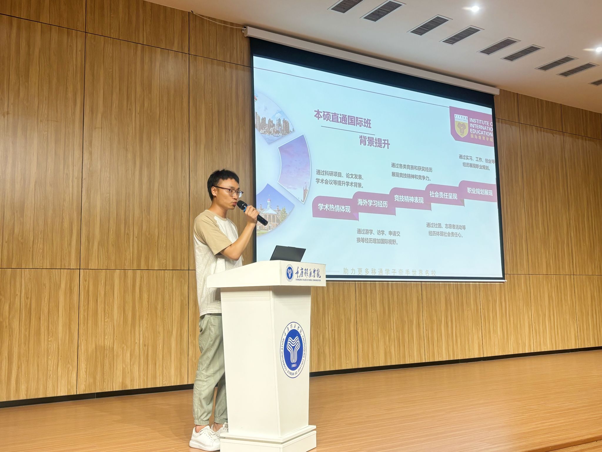 在新生见面会现场,学校国际教育学院李郭龙老师也为新生们带来了国际学院交流项目的精彩宣讲,从学院发展、未来成长等方面,李老师详细介绍了学院与国际知名高校的合作情况、丰富的交换生项目和海外机会等,并鼓励新生们要勇于走出国门、拓宽国际视野、提升跨文化交流能力,让新生们对未来充满了无限憧憬和期待。