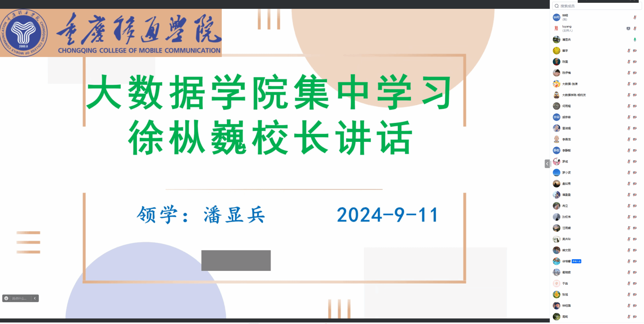 会议还着重强调了大数据学院集中学习徐枞巍校长讲话的重要性。为深入贯彻徐枞巍校长讲话精神,学院要求精心组织、扎实推进学习活动。通过对徐枞巍校长讲话的深入学习,旨在进一步推动我校全体教职工深刻领会“四位一体双院制”人才培养模式的内涵与意义,以及“双一流之外的首选大学”这一办学目标的战略定位。这不仅有助于全体教职工明确学校的发展方向,更能使大家在日常教学、科研和管理工作中更好地将个人工作与学校的整体发展紧密结合,为实现学校的办学目标贡献力量。此次学习活动将成为大数据学院在新学年工作布局中的重要组成部分,激励全体教职工在学院的发展建设进程中积极发挥作用,以昂扬向上的姿态迎接新的挑战与机遇。