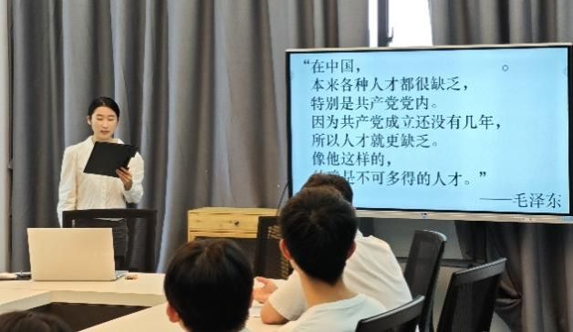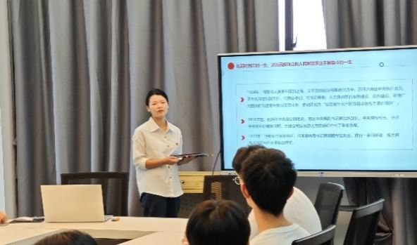 追红色记忆 走红色足迹 悟红色精神。在视频学习之后,孙权伟同志带领学生党支部全体同志深入学习贯彻习近平总书记在党的二十届三中全会上的重要讲话精神和全会精神,新时代新征程上,我们必须高举改革开放旗帜,深刻领会和把握进一步全面深化改革的主题、重大原则、重大举措,深刻领悟“两个确立”的决定性意义,增强“四个意识”、坚定“四个自信”、做到“两个维护”,这是新时代党员必须遵循的政治原则和行为准则。紧接着由陈永霞、陈紫函、王怡三位预备党员代表带来党史故事分享。一个个生动感人的故事,让同志们感受到了革命先辈们的坚定信念和无私奉献的精神,也引发了党员同志们的热烈讨论,党员同志们纷纷表示要缅怀先烈,发扬其精神。