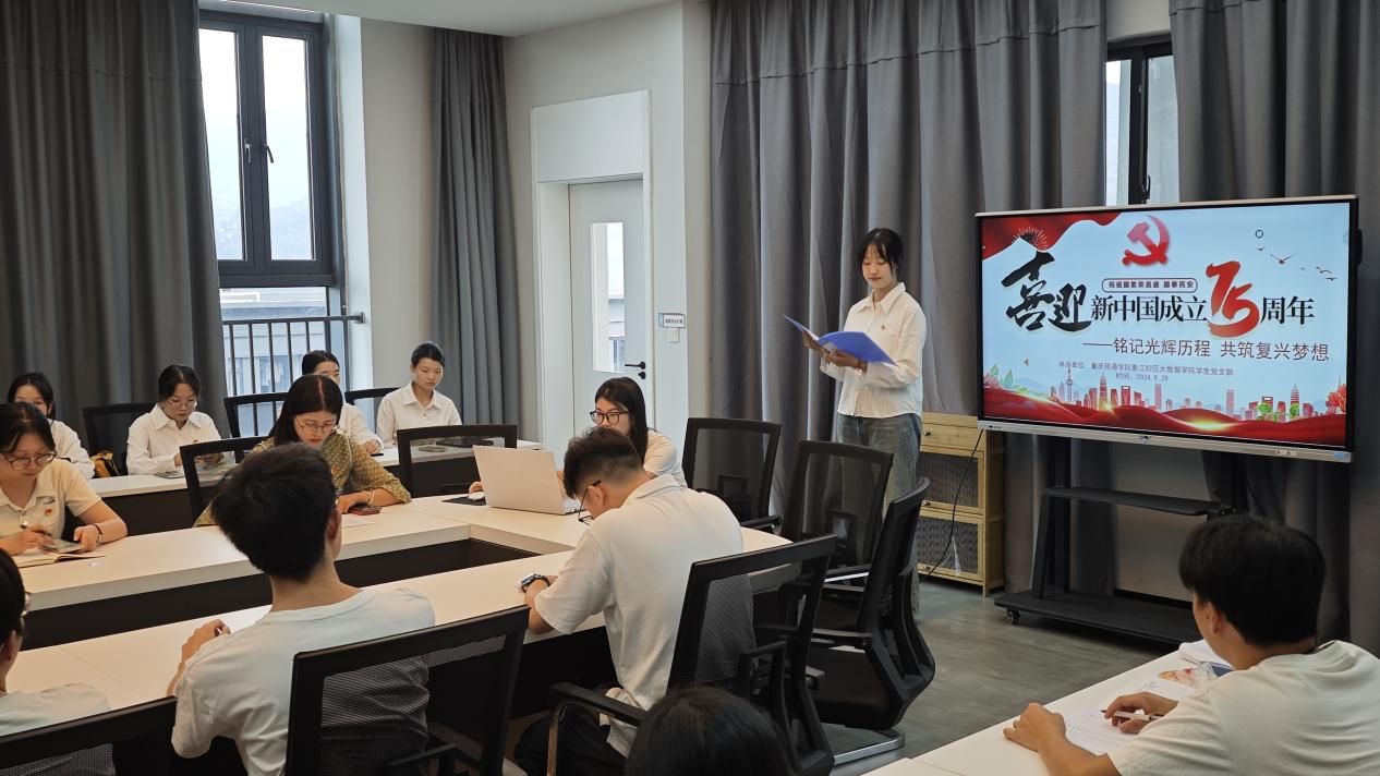 2024年9月29日,为深入学习贯彻习近平新时代中国特色社会主义思想和党的二十大、二十届三中全会精神,热烈庆祝新中国成立75周年,大数据学院学生党支部精心策划并成功举办了一场以“庆祝新中国成立75周年——铭记光辉历程,共筑复兴梦想”为主题的特色党日活动。此次活动旨在通过丰富多彩的形式,加深师生对党史国史的理解,激发爱国情怀,凝聚起为实现中华民族伟大复兴的中国梦而努力奋斗的青春力量。