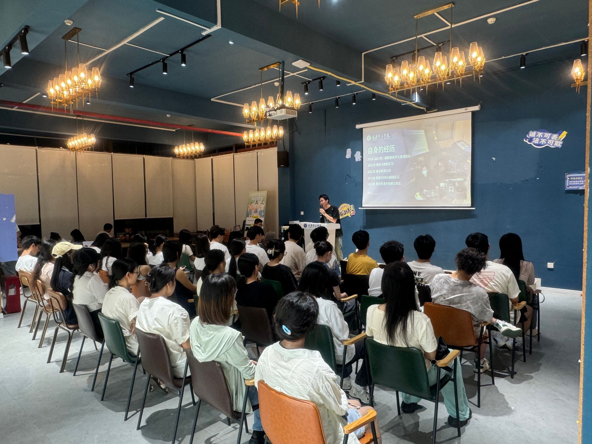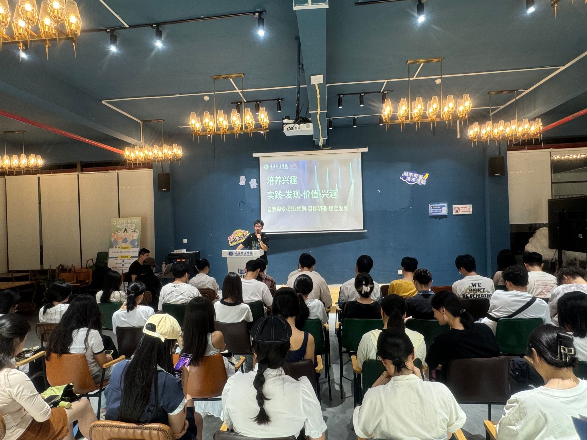 在当今这个竞争激烈的职场环境中,对自我职业兴趣的认知是成功开启职场的钥匙,同时培养自我职业兴趣也是当今能在职场中获得成功与幸福的关键因素。就此,大数据就业创业助理团综合实践部于2024年9月27日中午11点在綦河书院2号楼东篱故事茶馆开展了第六期就业沙龙活动——培养一个兴趣爱好。本次特别邀请2018级校友兼重庆移通学院綦江校区团委老师彭江宇为大四学生进行指导。