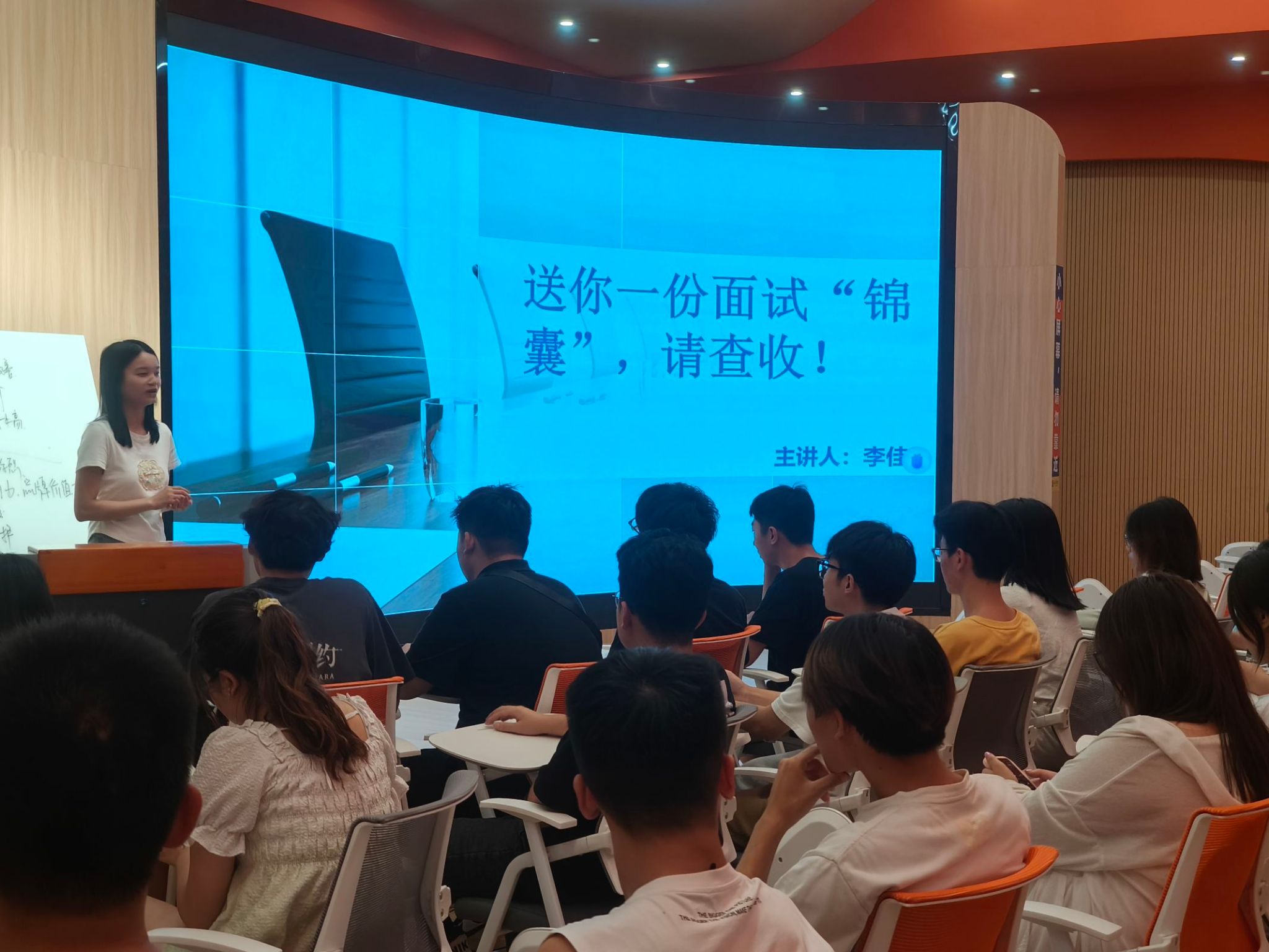 在经济高速发展的今天,面试已成为广大求职者迈向职场不可或缺的一环。为了赋能在校学生,提升他们的就业竞争力,大数据学院就业创业助理团于2024年9月25日19:00在古剑书院含光报告厅成功举办了第五期“就业沙龙”。本次活动特邀中共党员、GM.生涯工作室成员李佳导师,为在校生分享了高效面试的方法和技巧,旨在帮助他们更好地了解面试过程中的关键要素。