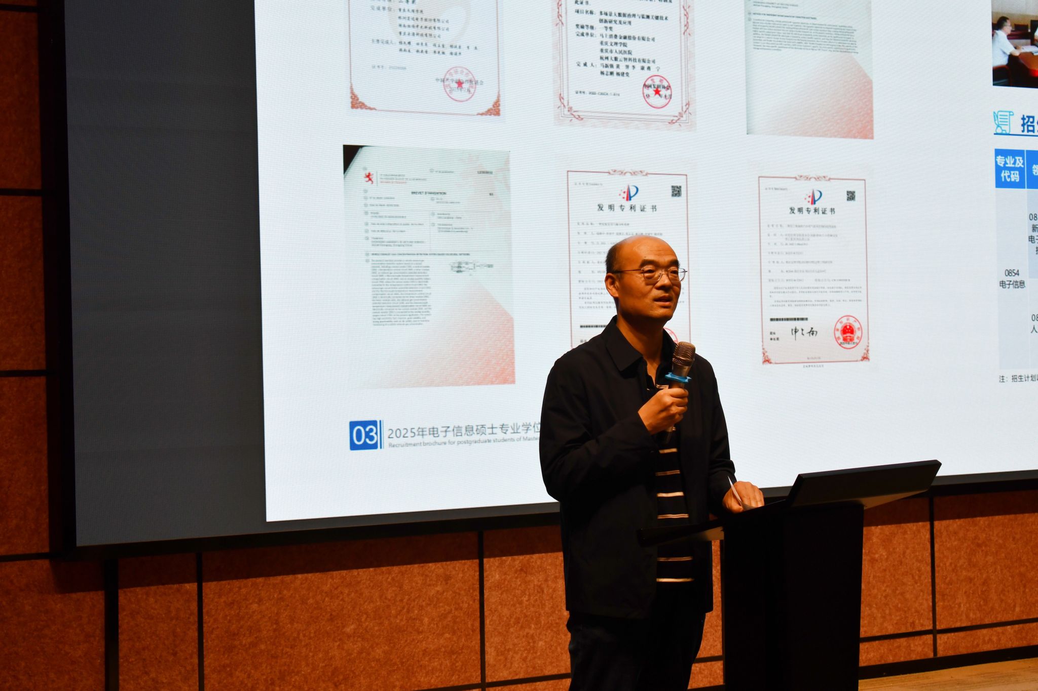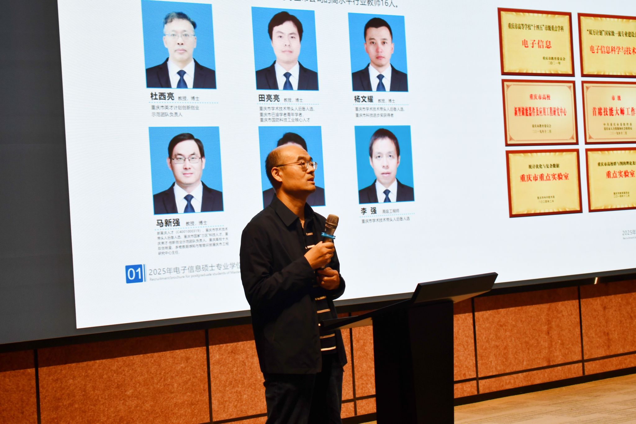 宣讲会伊始,高峰博士以今年招生策略为引子,逐一介绍了重庆文理学院研究生招生的各大专业、雄厚的师资力量、卓越的学科建设、科学的人才培养模式、广泛的社会服务以及活跃的学术交流情况。他特别强调了电子信息专业的发展前景与研究方向,并通过分享最新的科研成果和学术动态,使与会师生对该校的电子专业有了更为全面和深刻地认识。此外,高峰博士还骄傲地展示了学院所获得的多项市级荣誉与职称,彰显了重庆文理学院在学术研究与人才培养方面的卓越成就。
