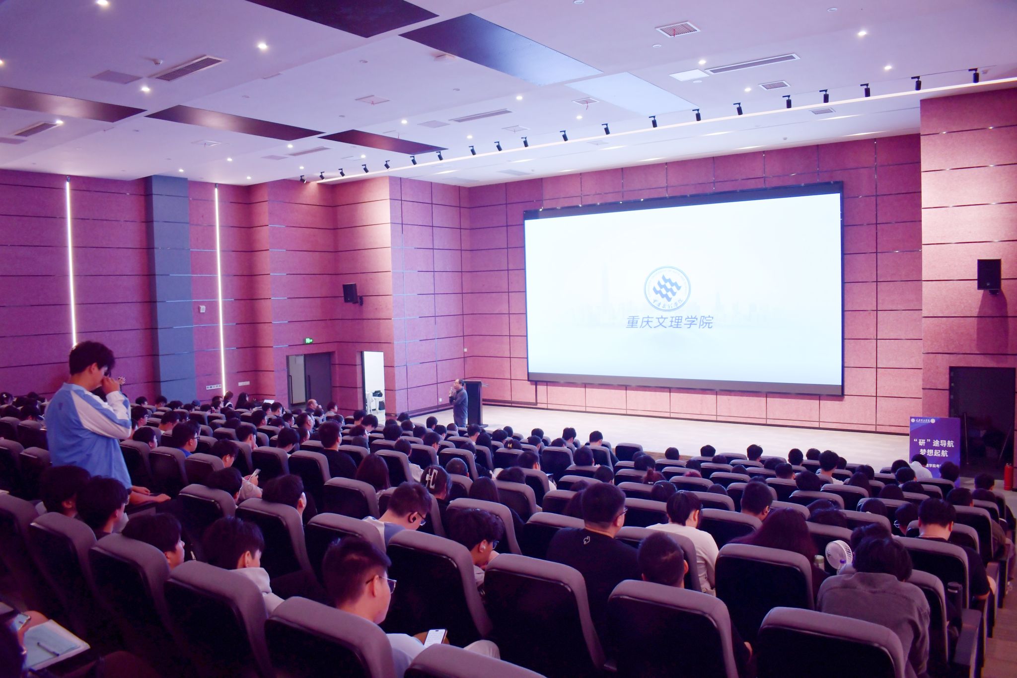 为了更加直观地展现重庆文理学院的风采,宣讲会中特别穿插了重庆文理学院的宣传视频。视频以其生动的画面和详实的内容,让在场的每一位同学都对学校产生了浓厚的兴趣与向往。随后,高峰博士针对同学们关心的招生政策、招生指标、奖学金设置以及就业前景等问题进行了耐心细致地解答,消除了同学们的疑虑与困惑。他鼓励同学们要勇敢面对考研的挑战,积极追求学术梦想,为未来的学术研究与职业发展奠定坚实的基础。