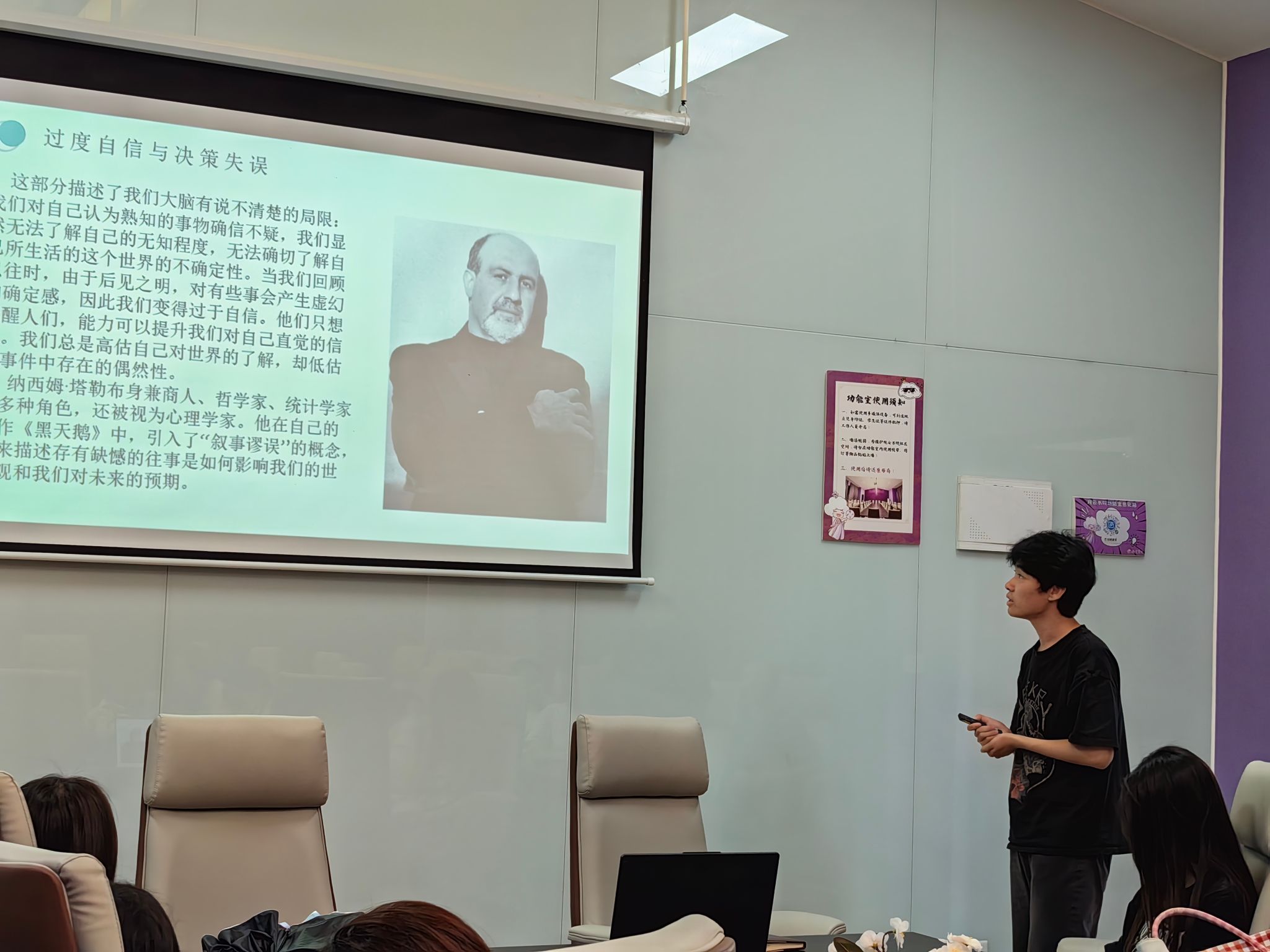 在阅读分享环节,同学们纷纷发表了自己的见解。左浩南同学表示通过阅读《思考,快与慢》,意识到自己在面对问题时,往往容易受到直觉思维的影响,而忽视了理性思考的重要性。周正浩同学则认为,这本书让他明白了如何在复杂多变的环境中,运用两种思维方式做出更明智的决策。