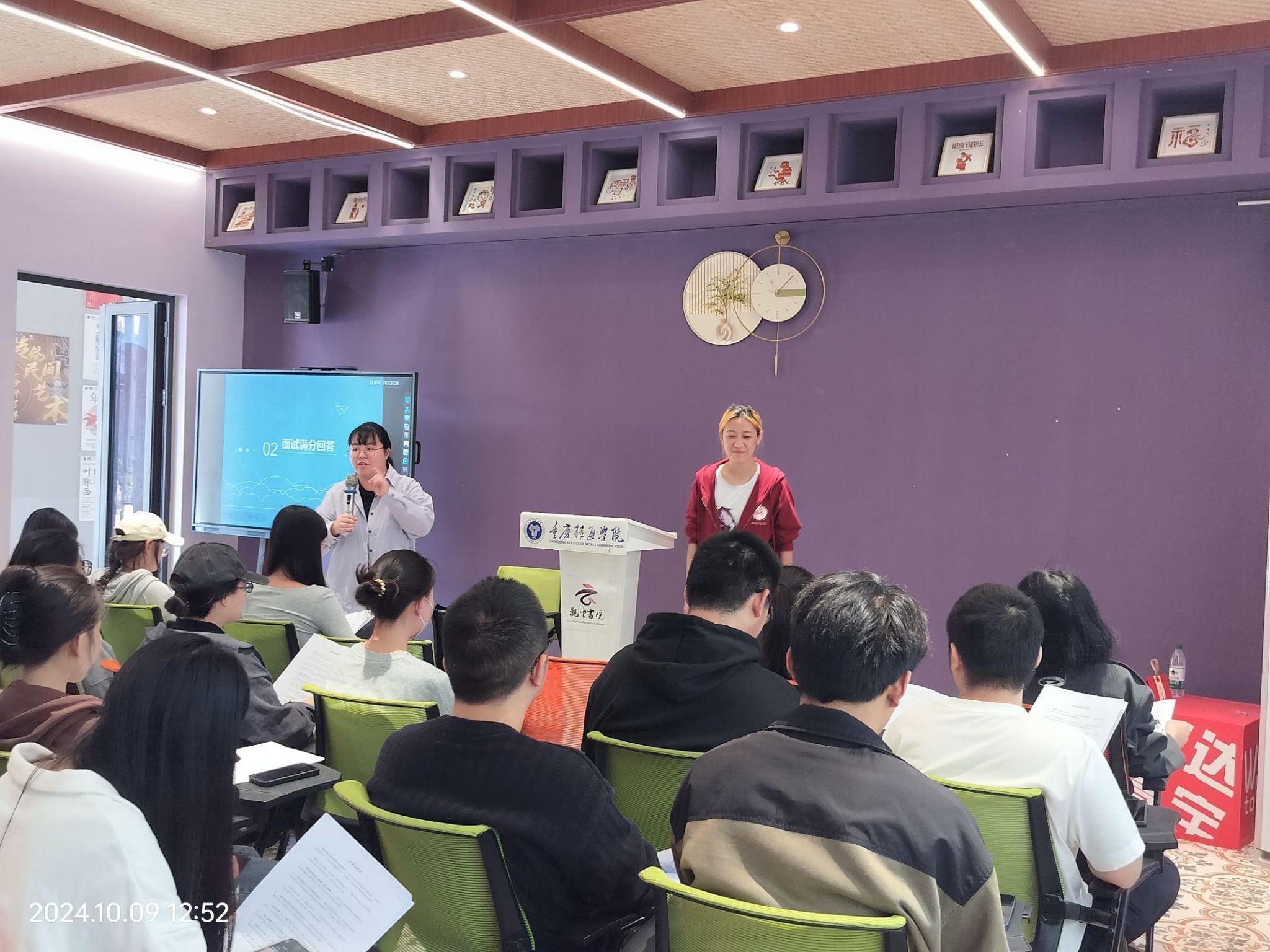 在当今这个快节奏高发展的时代,想要在众多求职者中脱颖而出,通过面试展现自己的能力极为重要,而HR话术中防不胜防的陷阱往往会阻碍求职者面试环节的顺利进行。为了帮助同学们识破HR的话术陷阱,制定有效的应对策略,从而顺利通过面试,大数据学院就业创业助理团于2024年10月9日12:30在观云书院芒种华文书吧开展了“掌握面试技巧,破解HR话术”就业沙龙讲座。此次活动特别邀请到了就业创业指导老师、商业分析师、社会工作师等等荣誉集于一身的朱思琪老师,朱老师为同学们解读了HR面试时常用的话术陷阱,帮助同学们提前了解职场面试,让同学们掌握了一定的面试技巧,为我校求职学子打了一针强心剂。