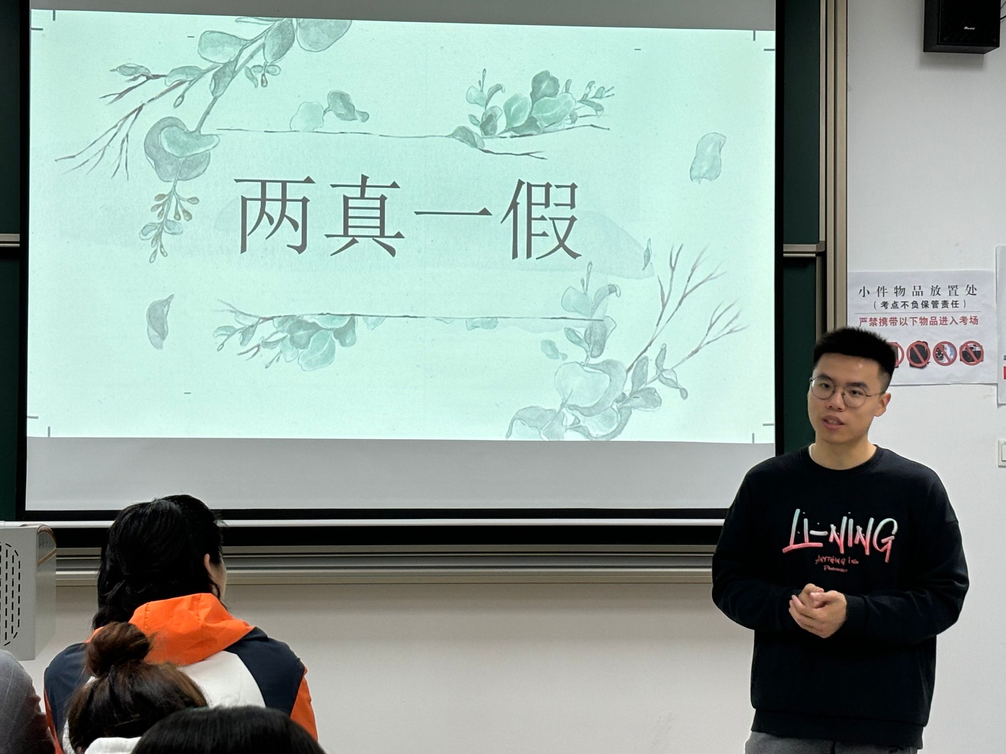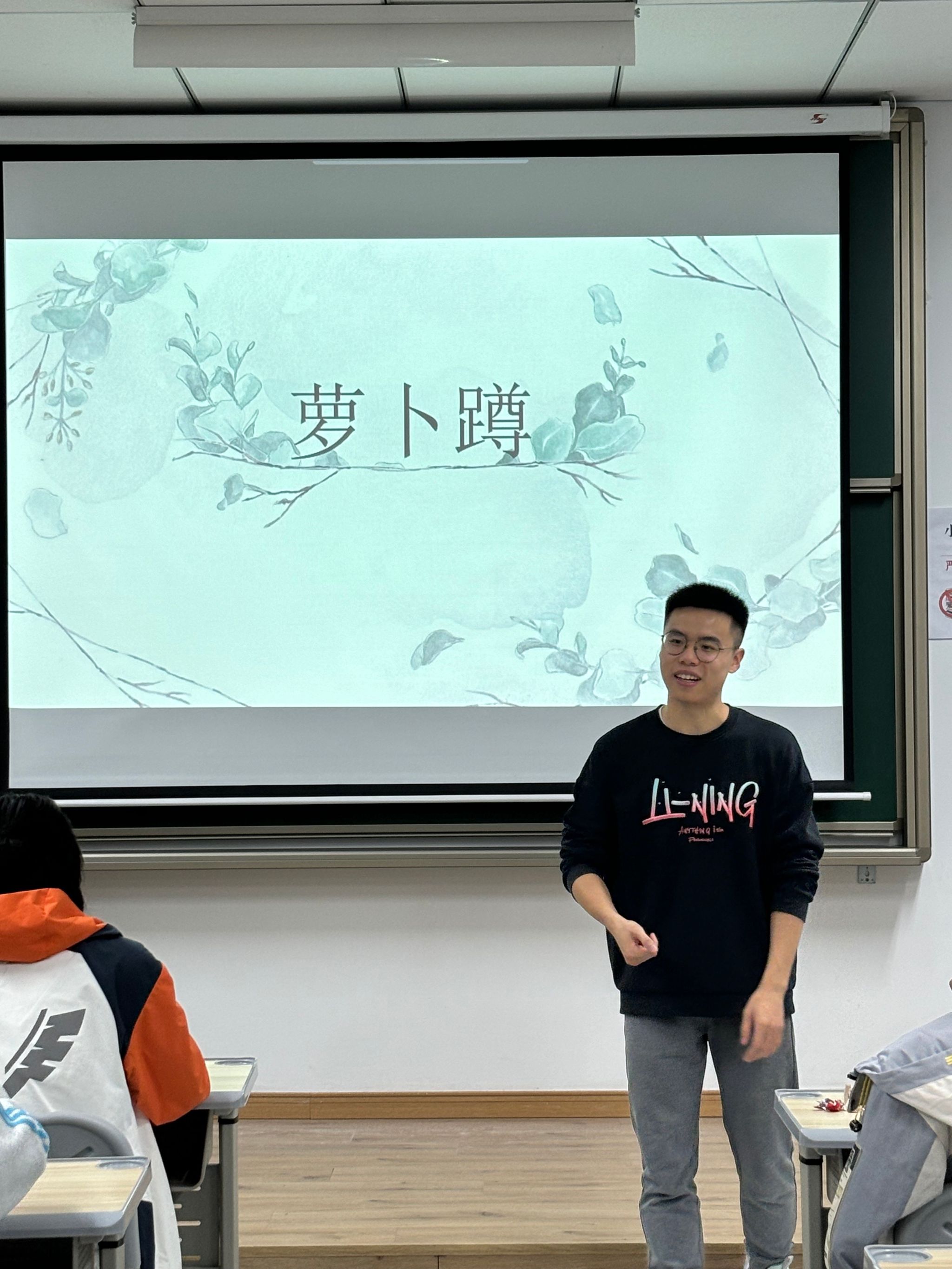 为了进一步活跃气氛,见面会上安排了经典的破冰游戏“萝卜蹲”和“两真一假”。在“萝卜蹲”游戏中,同学们按座位分成小组,大家轮流按照指定的动作和口令进行“萝卜蹲”。每个小组成员都需要保持高度专注,稍有疏忽就会出错,惹得现场笑声不断。而在“两真一假”游戏中,每位同学依次说出三件关于自己的事情,其中两件是真实的,一件是虚假的,其他人则需要猜测哪一条是假的。这个游戏不仅帮助大家进一步了解彼此,也让许多平时不为人知的小趣事浮出水面,师生们在欢声笑语中变得更加熟络。