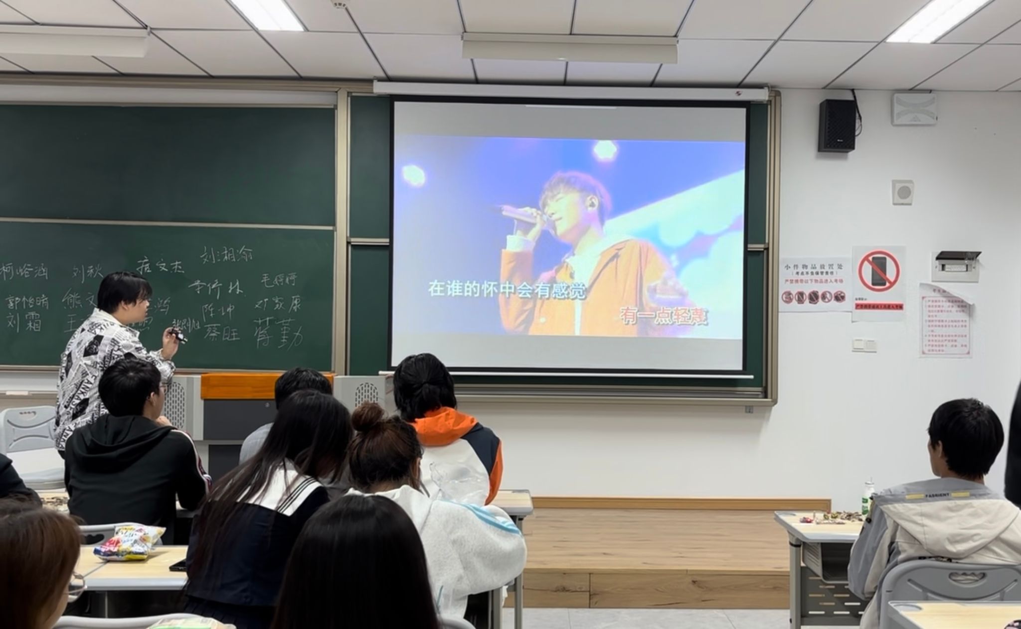 见面会的最后环节是同学们的才艺展示。刚才游戏输了的同学纷纷上台进行歌唱表演。谢国庆老师对学生们的才艺给予了高度评价,并表示非常期待在未来的学习生活中,看到同学们更多的精彩表现。