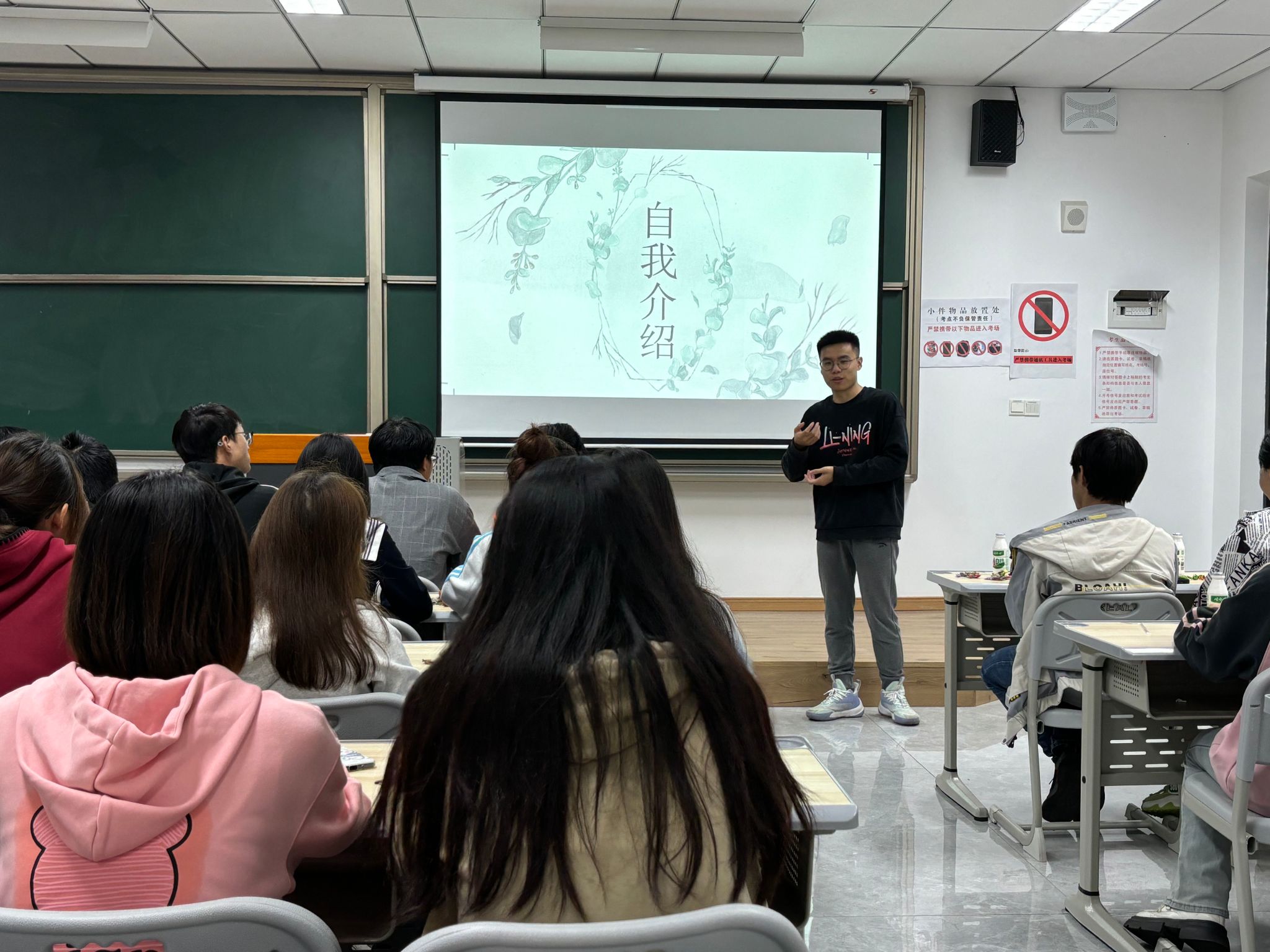 见面会伊始,谢国庆老师向同学们做了简短的自我介绍,幽默风趣的言辞让大家倍感亲切。随后,同学们依次进行了自我介绍,把自己的姓名写在了黑板上,分享了各自的家乡、兴趣爱好和对未来学习、生活的期待。通过简单的交流,大家很快打破了和老师初次见面的拘谨。