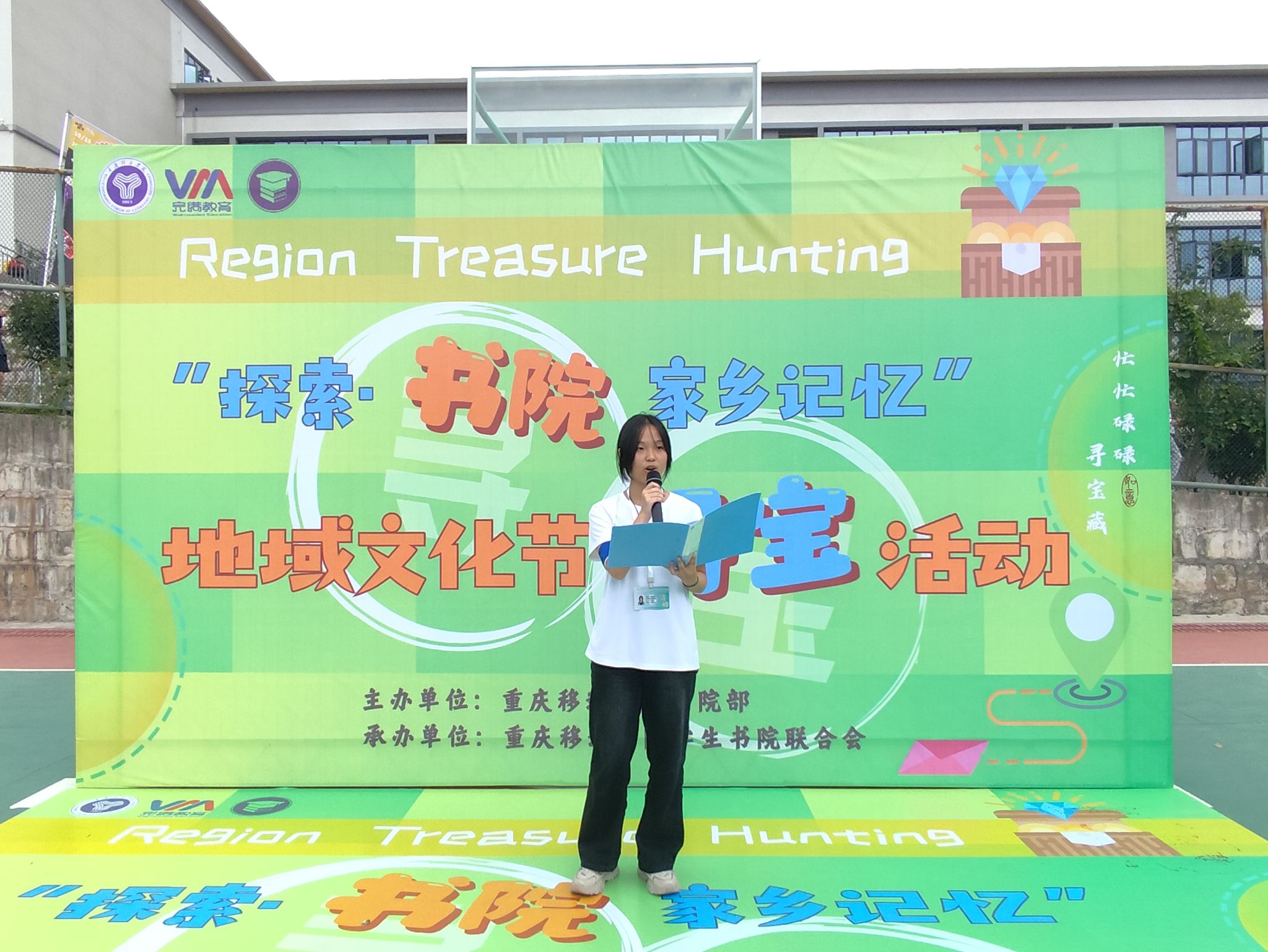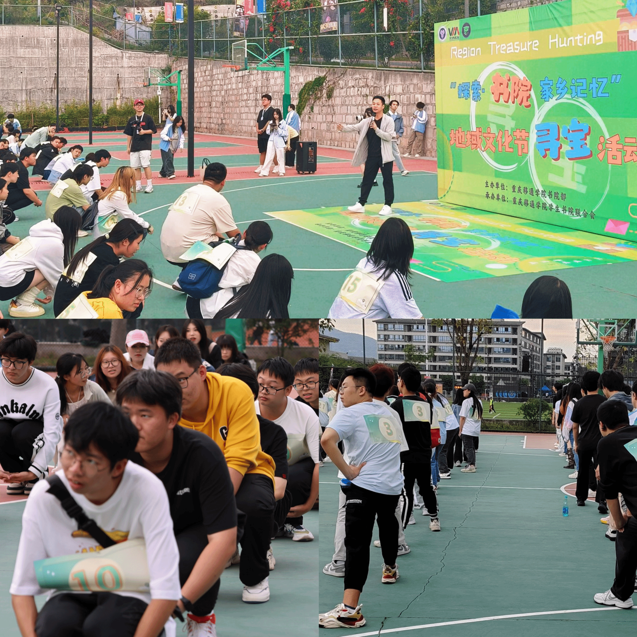 习近平总书记强调:“坚定文化自信,是事关国运兴衰、事关文化安全、事关民族精神独立性的大问题。”地域文化承载着深厚历史底蕴与独特人文魅力,作为个体文化理念生成的本源和群体文化自省建构的基础,意义重大。10 月 16 日下午 16:00,由重庆移通学院书院部主办,学生书院联合会承办的“探索·书院地域记忆”地域文化节寻宝活动在仁者楼旁篮球场及各书院火热进行,近 200 名同学、32支队伍满怀热忱地踏上了这段充满惊喜与挑战的地域文化探索征程,大数据学院的异科导师姜志成、马慈也带学生充分参与其中。