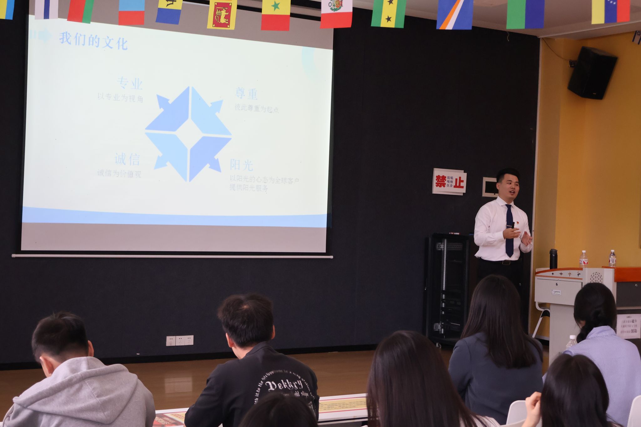最后,胡林老师落脚于脚踏实地的奋斗和过硬的专业水平。他说“不管从事什么岗位,是技术类的也好,是文字类的也罢,还是市场类的。你都要掌握一个东西叫做专业。你所面对的是未来的客户,唯有专业的知识才能胜任行业的工作。”他提醒毕业生们时刻保持奋斗精神,不断提升自身综合素质,努力匹配企业岗位需求。