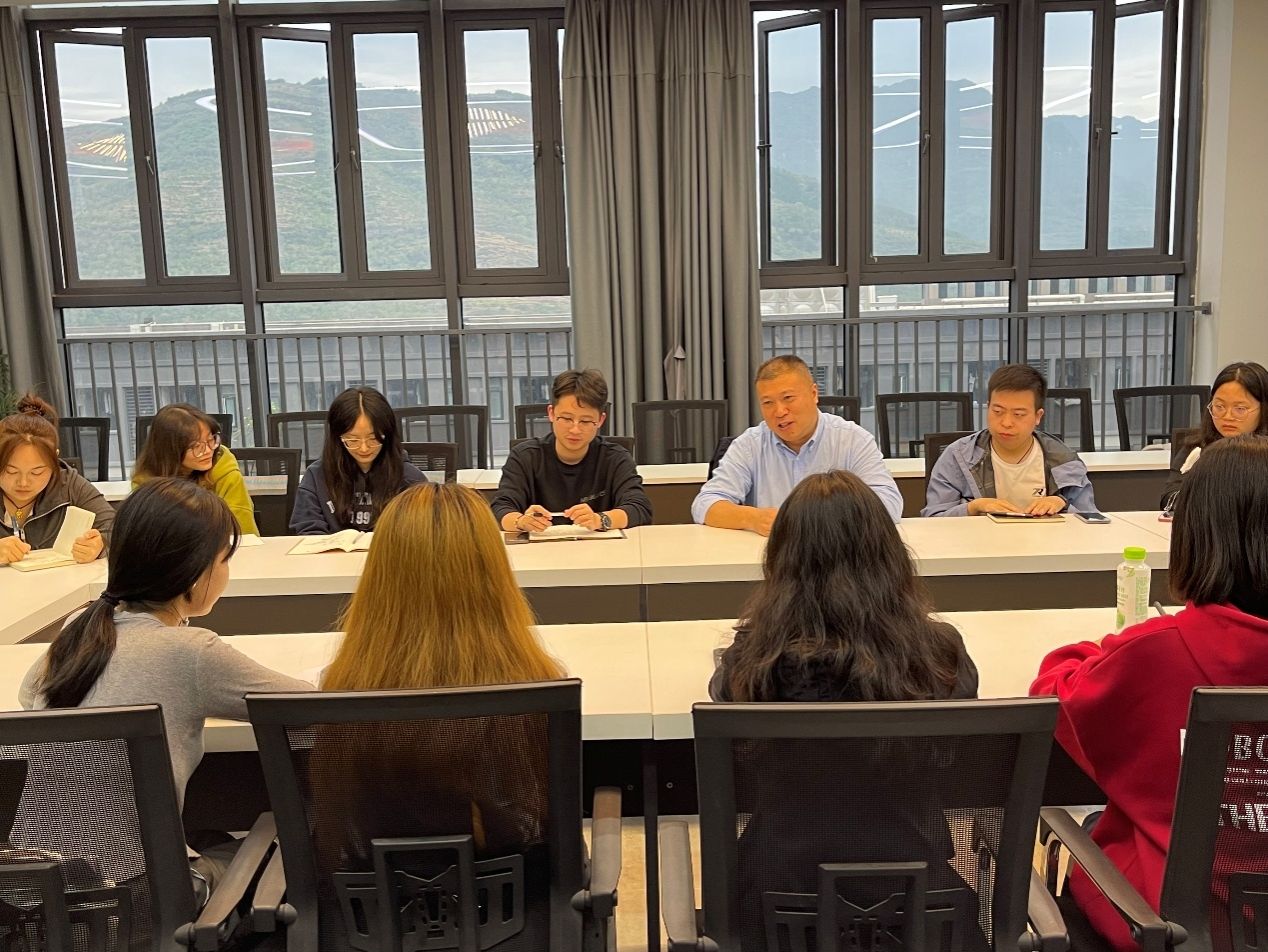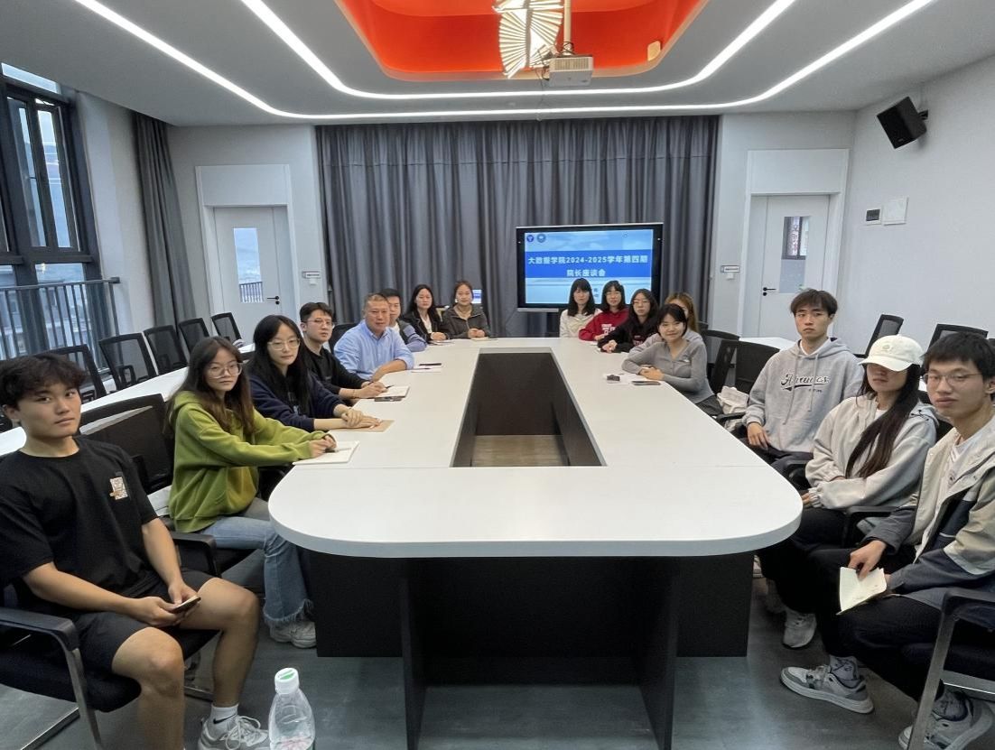 落叶知秋,岁月如歌。为了更好地了解学生的期盼和诉求、更有针对性地解决同学们的各种问题。2024年10月24日16:00,重庆移通学院綦江校区大数据学院2024-2025学年第四期院长座谈会在玉棠书院地心会议室举行,参与本次座谈会的人员有大数据学院院长潘显兵,辅导员代表孙权伟,教师代表独潇、赵江芙,以及2022级和2024级数据科学与大数据技术专业12名学生代表。