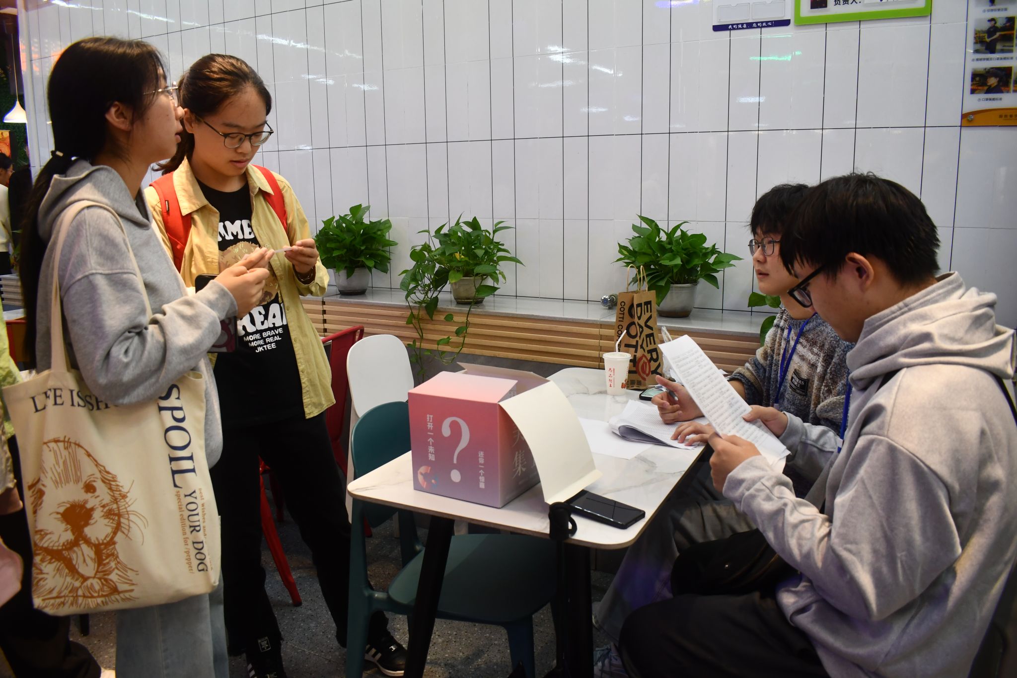 此外,东溪食堂内也涌动着一股热烈而有序的氛围。在这里,四六级英语角、权益寻宝、防骗小课堂、诗词飞花令等打卡点吸引着络绎不绝的同学驻足参与。