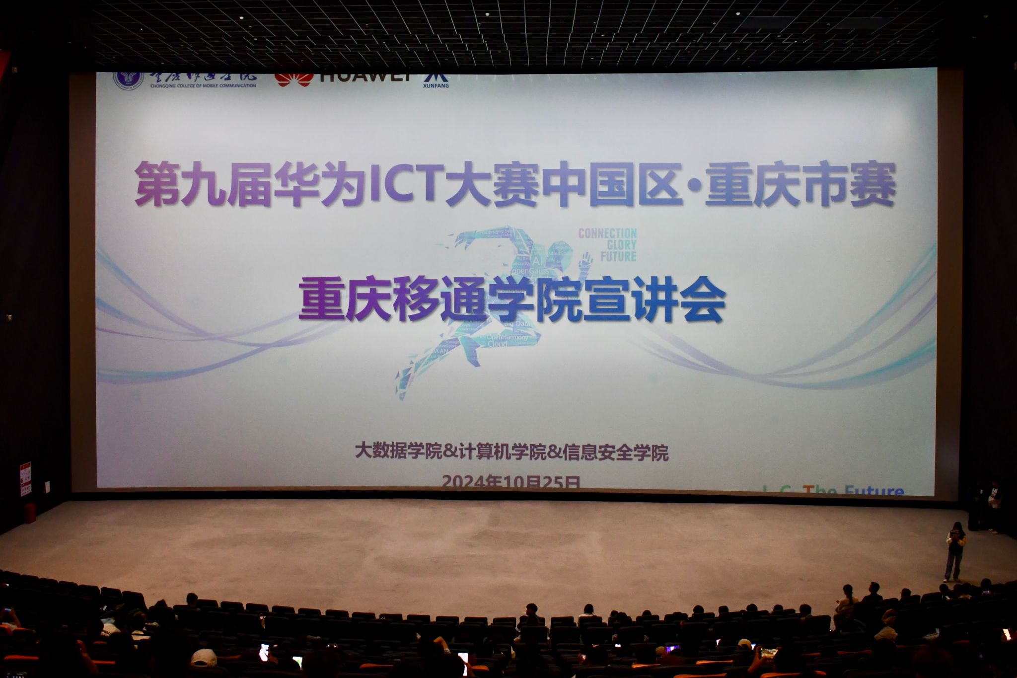 为了发掘更多潜力无限的科技新星,激发青年一代的创新活力,大数据学院于10月25日下午14:00组织了第九届华为ICT大赛中国区·重庆市赛校园宣讲会。此次宣讲会在万画影城一号巨幕厅举行,邀请到了深圳市讯方技术股份有限公司重庆校企合作总监扈月秋入校宣讲,大数据学院、计算机学院、信息安全学院600余名学生代表参加了宣讲会。宣讲会由曾珂老师主持。