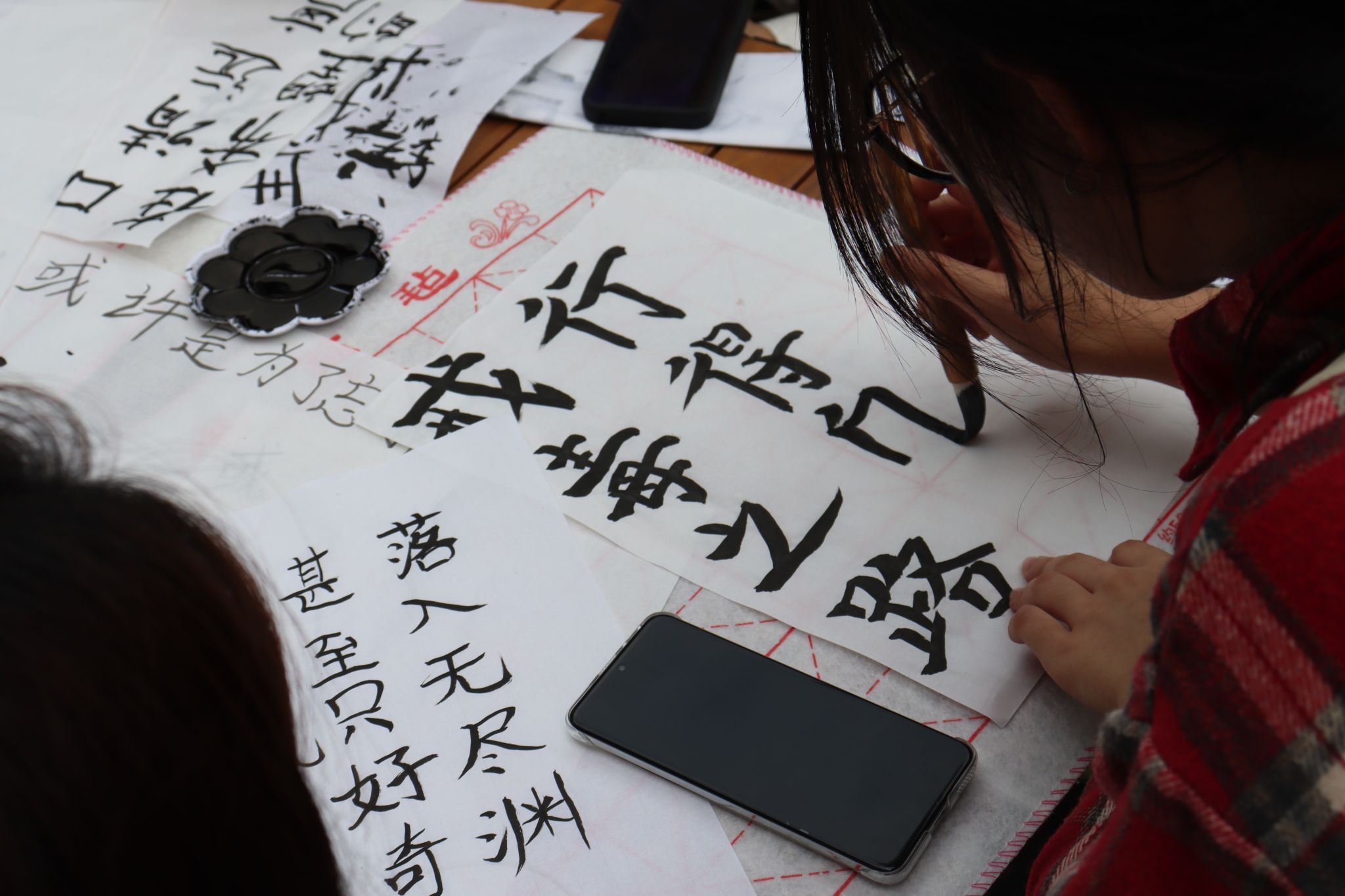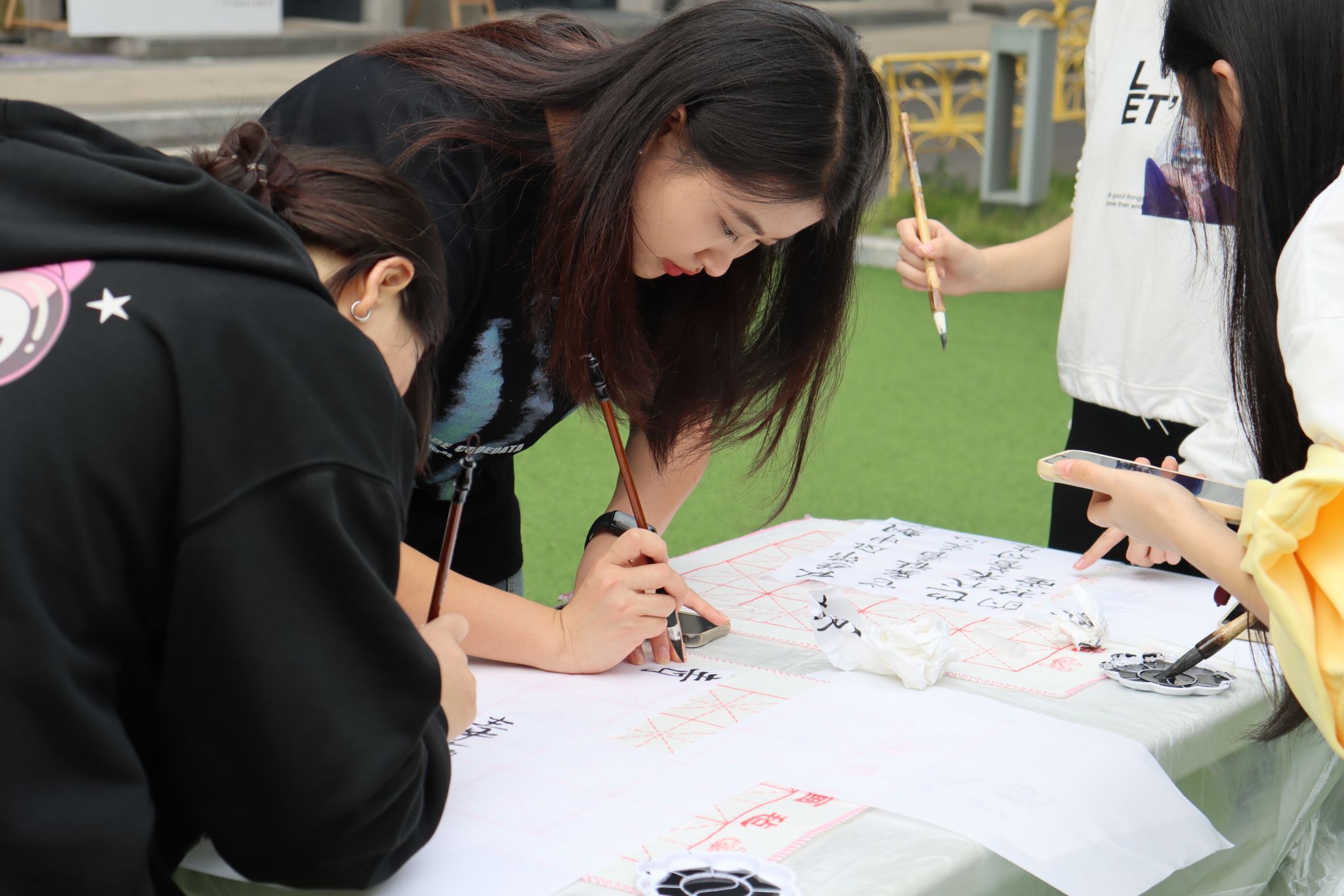 活动现场,参与者们围绕“禁毒防艾”的主题展开书法创作。在志愿者的引导下,参与者们抽取了禁毒防艾主题元素,并将这些元素与自己受到的启发相结合,书写在纸上。在书写过程中,同学们坐姿端正,运笔沉稳,专注于每一个笔画。每一字、每一词都结构严谨,墨水丝丝浸染着纸张,展现出汉字的独特韵味。书法艺术不仅展示了其独特的魅力,而且让参与者们对禁毒防艾有了更深刻的理解。