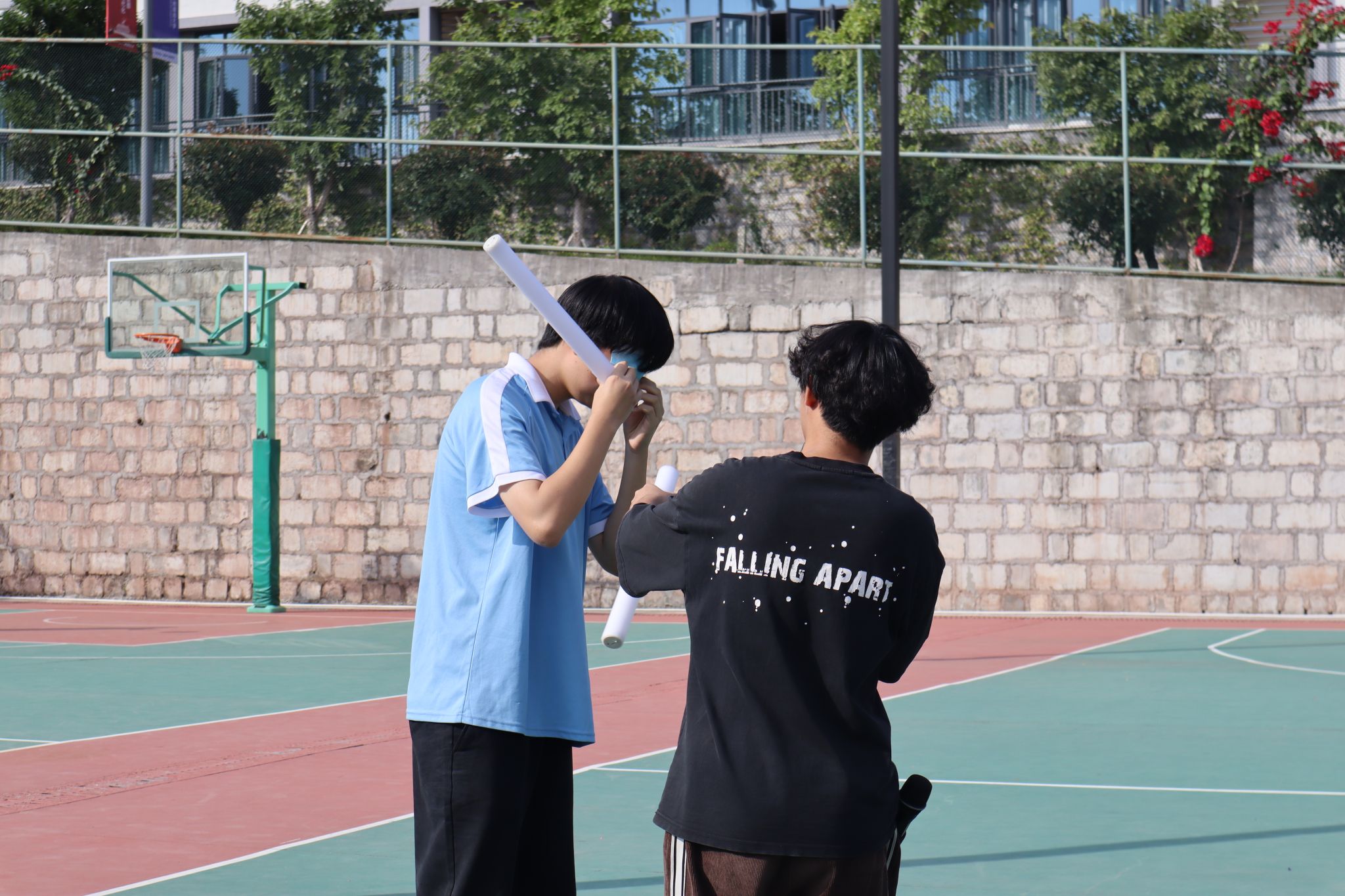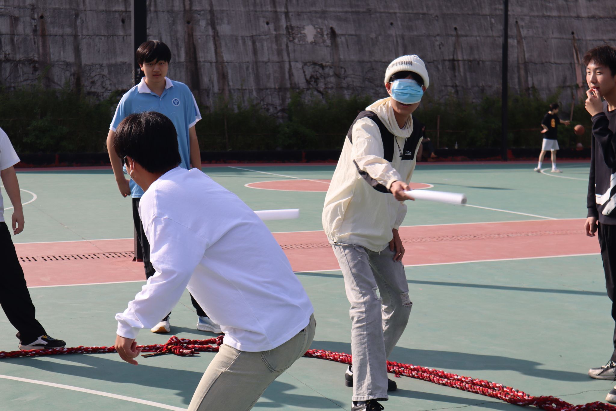 最后是一个非常考验团队协作的活动——蒙眼打人。“往前走,往前走”“十点钟方向”小组成员们默契的相互指导着,篮球场上响彻着志愿者们的欢声笑语,活动如火如荼的进行着。