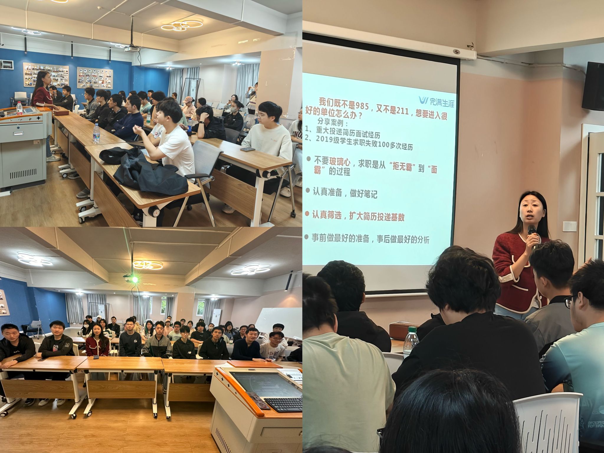 对自身理想的职业有一个合理的分析和优势识别,是成功的开始。为了充分发挥同学们的自身优势,助力他们快速且精准地找到职业定位,大数据学院就业创业助理团于2024年10月23日18:00在瀛溪书院智慧教室举办了“求职分析与优势识别”的指导活动。本次活动特别邀请了崔向灵老师担任主讲人。崔老师提出的“三点一线”求职模型,是大学生从校园迈向职场的有力工具。大学生们就像一艘艘等待出航的船只,在“内观”时,如同船只在港湾中仔细检查自身结构,深刻剖析个人兴趣、能力等内在因素,了解自己这艘船的性能。“外察”则像是瞭望远方的海平面,关注行业动态,把握风向,分析外部职业环境。“精进”恰似给船只添砖加瓦,提升技能,加固船身,确保在职业的海洋中能稳健航行。在个人能力与职业定位方面,崔老师提供的各种测评工具,如同精准的航海图,帮助学生们找到最适合自己的航线,避免在茫茫职海中迷失方向。通过能力三核的分析,结合各类职业测评,学生能更好地知晓自己适合驶向何方,是技术研发的深海,还是市场营销的浅滩,亦或是管理运营的港湾。