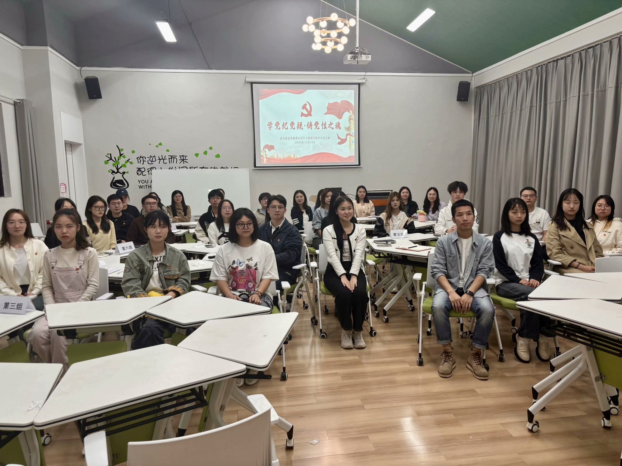 在金秋十月的尾声,2024年10月29日18时,重庆移通学院大数据学院学生党支部于横山书院安逸·情绪回收站功能室,举办了一场以“学党规党纪,铸党性之魂”为主题的党日活动。此次活动不仅是对中共中央于2023年12月新修订的《中国共产党纪律处分条例》(以下简称《条例》)的一次深入学习,更是对全体党员同志党性修养和纪律意识的一次全面锤炼。