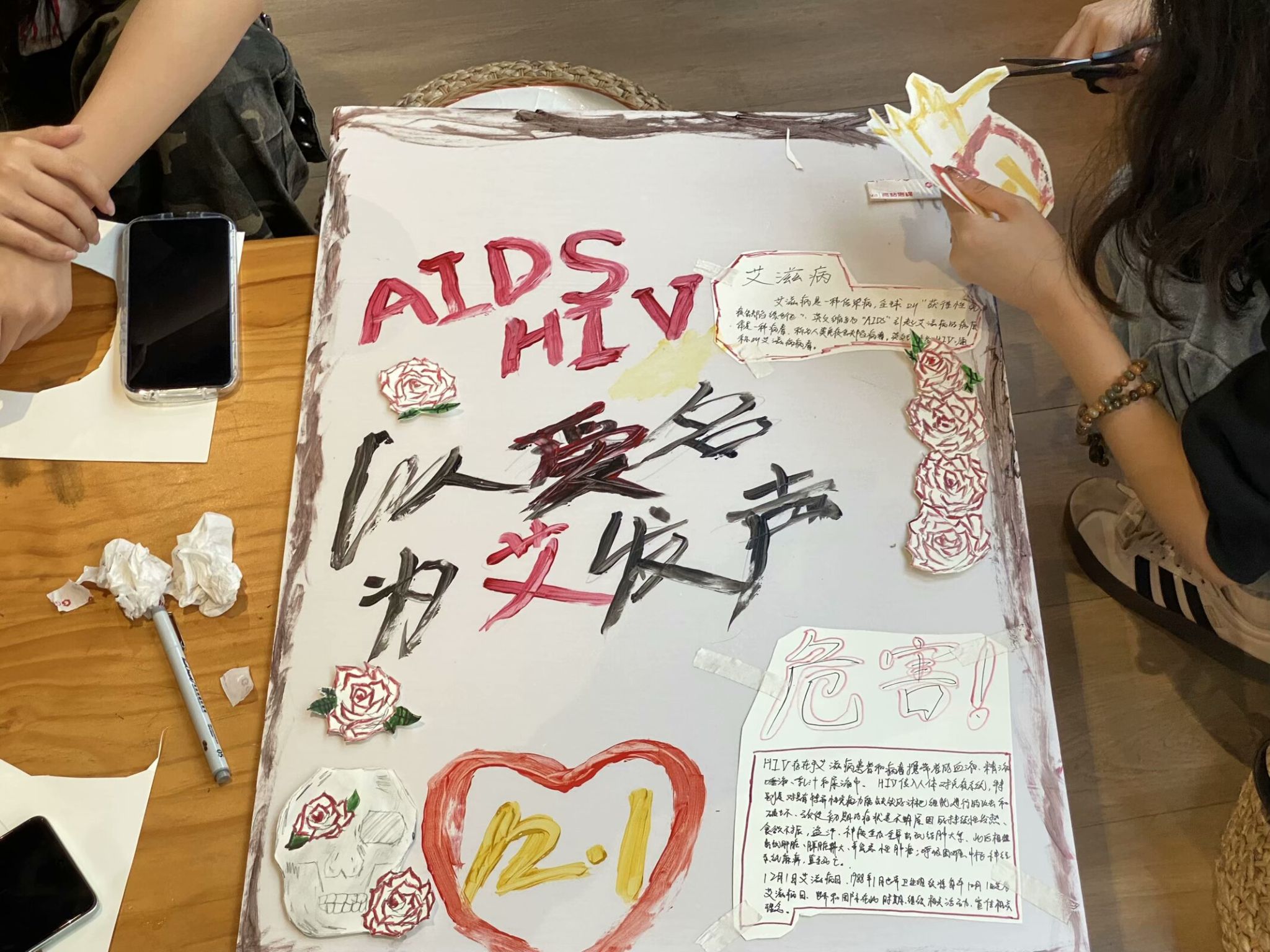活动创作过程中,参与者们以小组为单位,从设计到实施,每一个环节都凝聚了他们的智慧与汗水。他们用手中的工具,将艾滋病的防治知识转化为一幅幅立体画作品。每幅作品寓含故事,每一抹色彩都承载着对于生命的尊重和健康的关注。他们的作品不仅是艺术呈现,更是对防艾知识的深刻理解。这些作品成为防艾宣传的亮丽风景线,也让防艾意识深深扎根在同学们心中。
