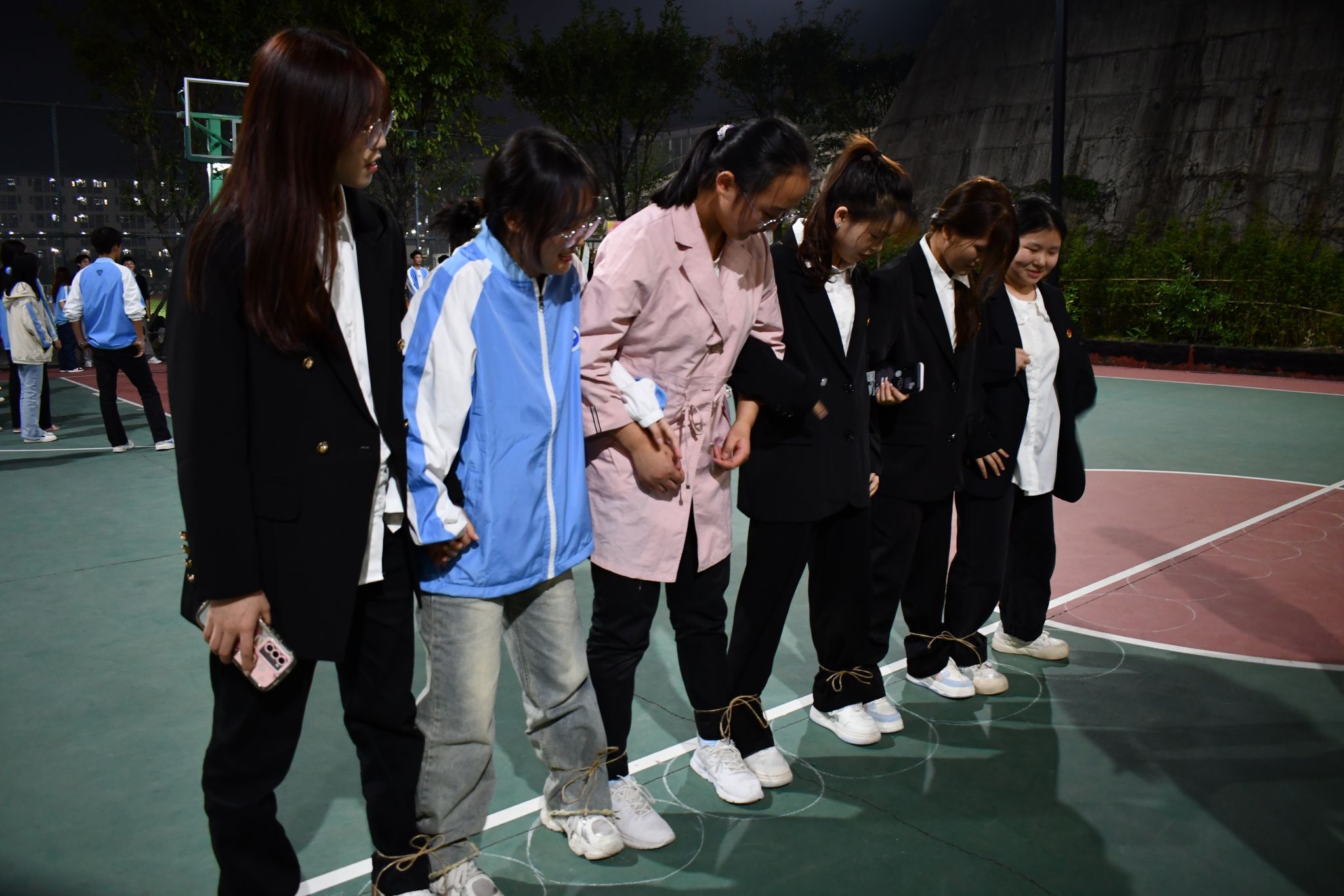 其中,现场最为激动人心的游戏区域便是“月球漫步”。参与游戏的队员们站成一队,相邻的两个人将脚踝绑在一起,就像是一个紧密相连的整体。他们要一起穿越那条用粉笔精心绘制的“路”,这可不是一件容易的事,要求行走过程中一个圈内只能停留两只脚且所有的人不能踩到圆圈,否则就要重新开始。然而,这并没有难倒这些充满斗志的队员们,他们相互扶持、相互鼓励,每当有人出现失误,大家都会给予安慰和支持。当他们成功走完圆圈“路”时,那兴奋的欢呼声仿佛要冲破云霄。通过“月球漫步”的小游戏,成员们不仅提高了自己的手脚协调能力,更是促进了队员之间的交流和沟通,让彼此之间的关系更加紧密,增强了团队意识。